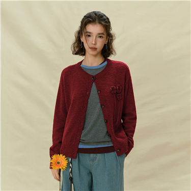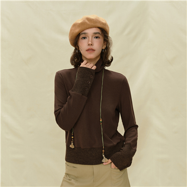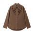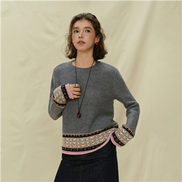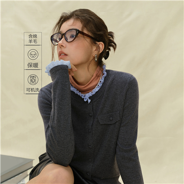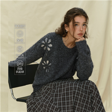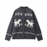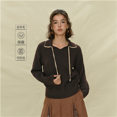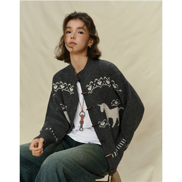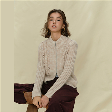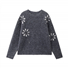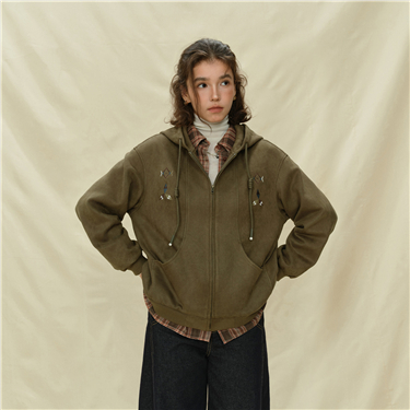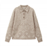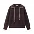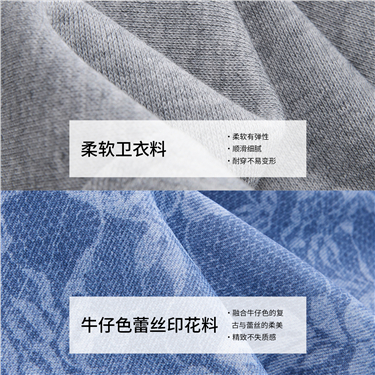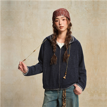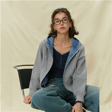 仿牛仔蕾丝印花连帽针织卫衣外套