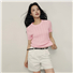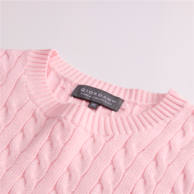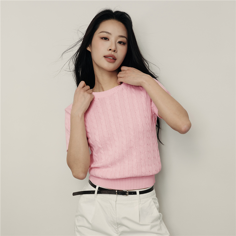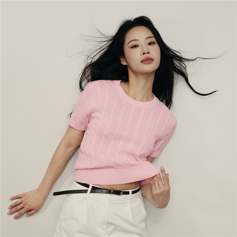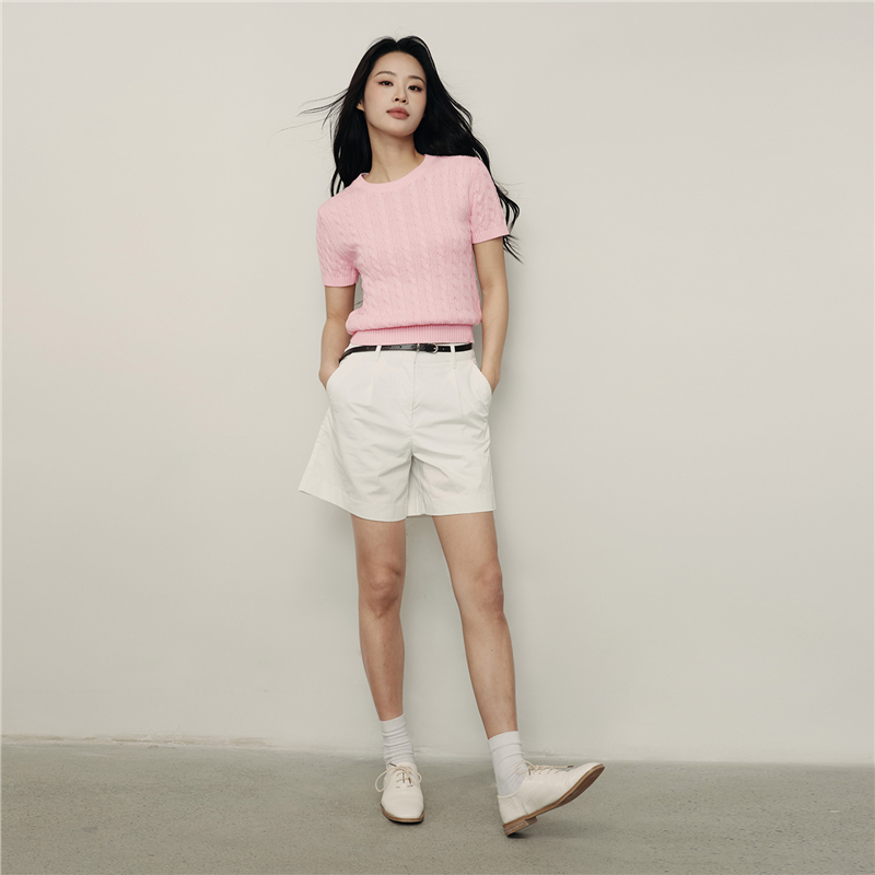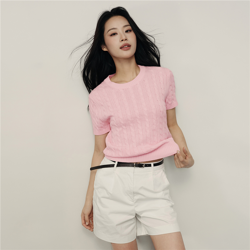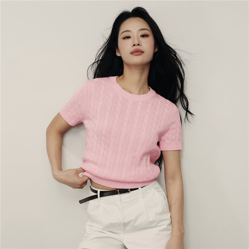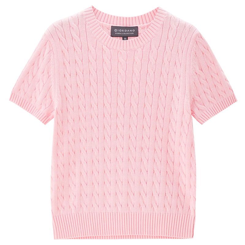 【韩国明星同款】佐丹奴女装纯棉绞花圆领短款短袖针织衫
