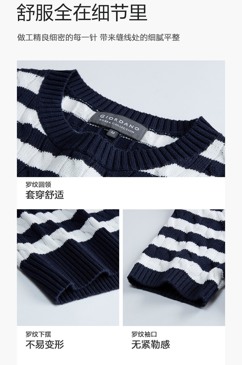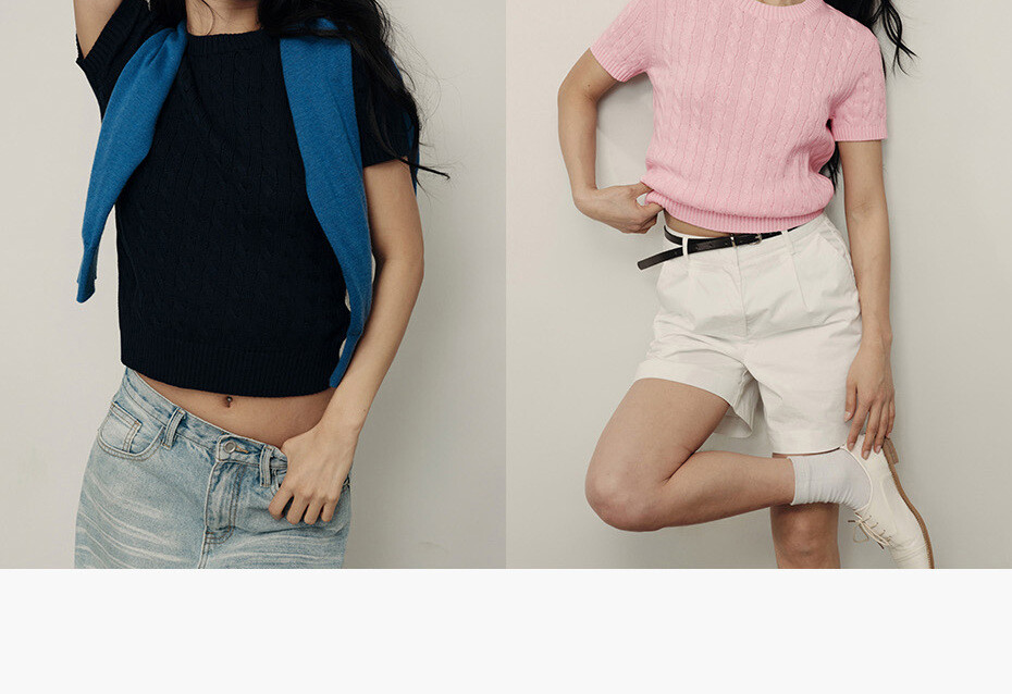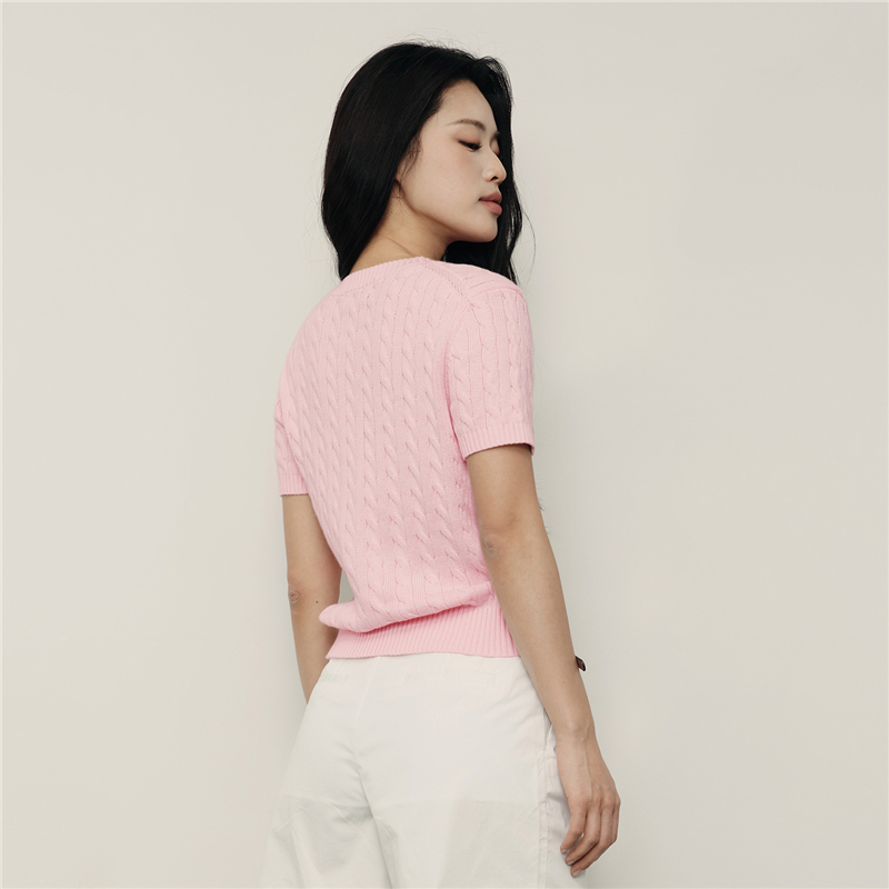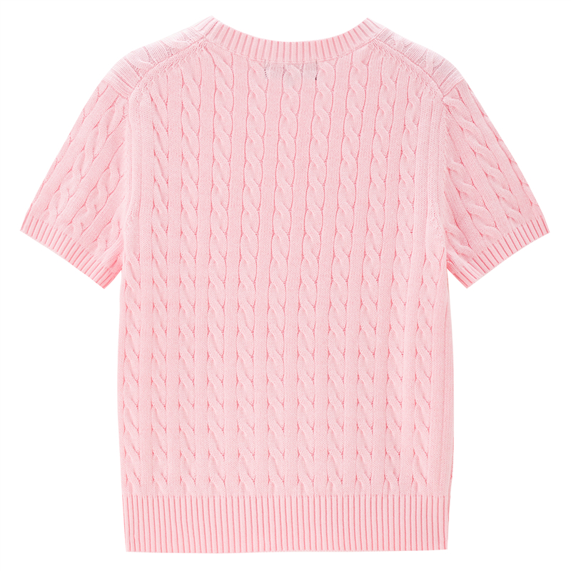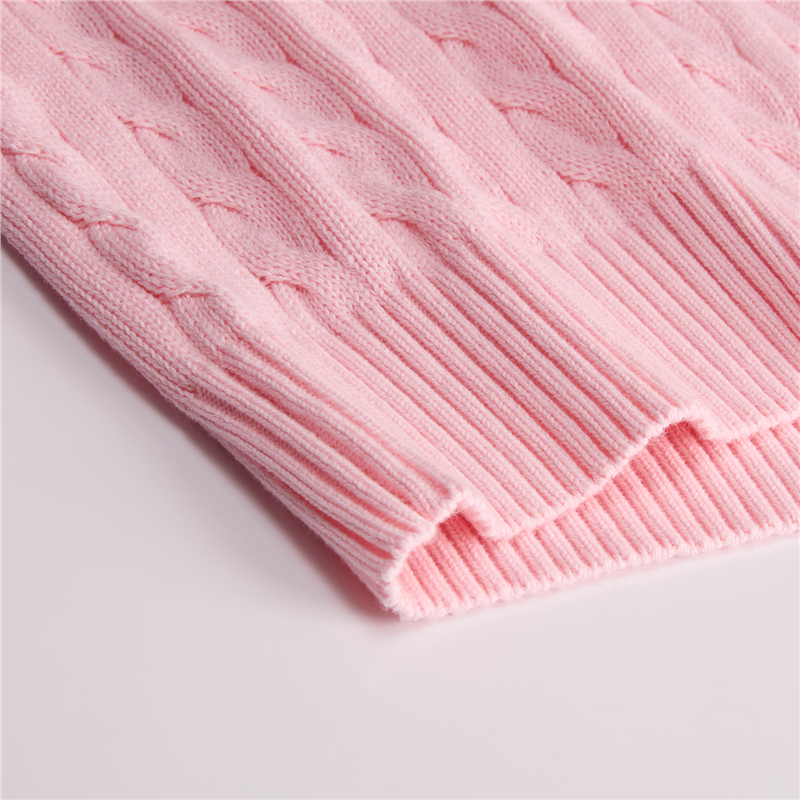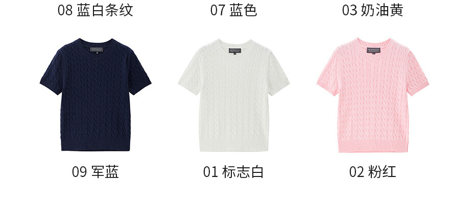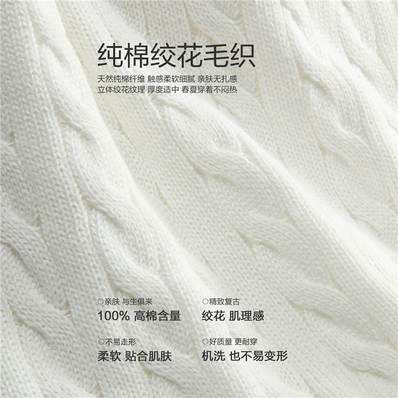 100%纯棉面料,柔软细腻;罗纹圆领,不易变形,易穿易搭;绞花设计,精致立体,气质斯文。