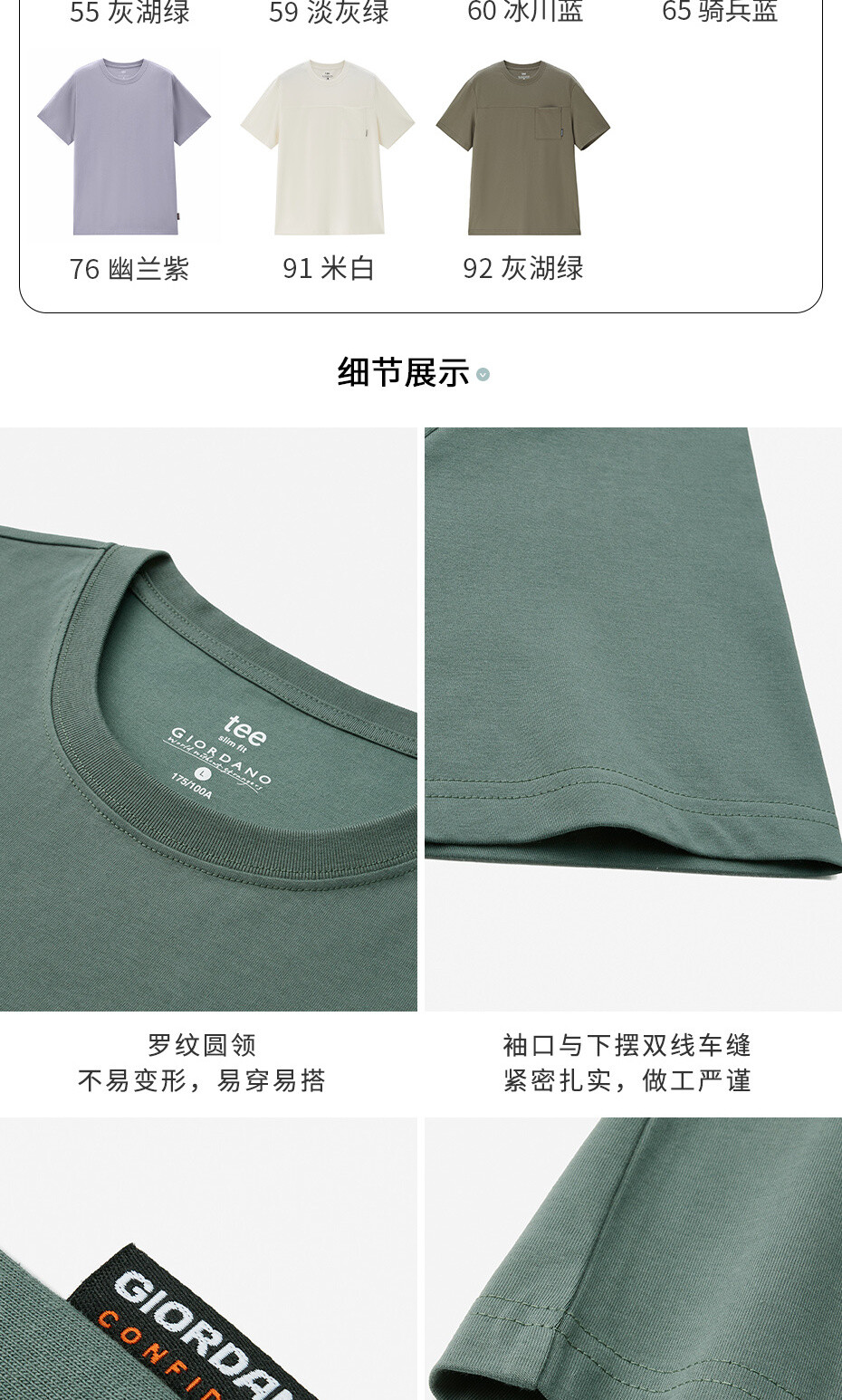 冰氧酷棉涤面料,有效降温散热,夏日体验清爽凉感;罗纹圆领,修饰颈项,反复套穿不易走形;经典纯色,简约易搭,轻松出席各种场合