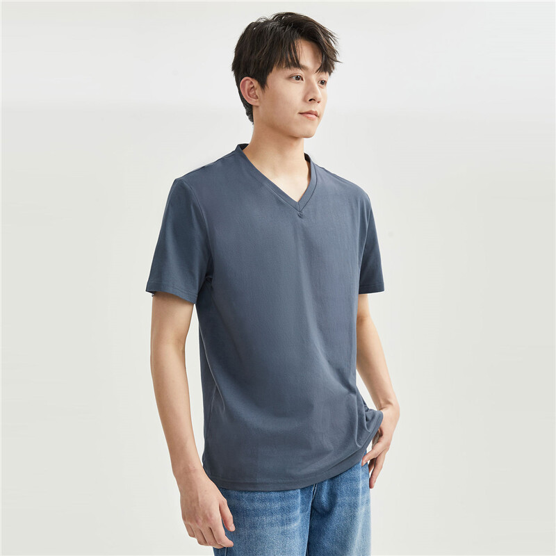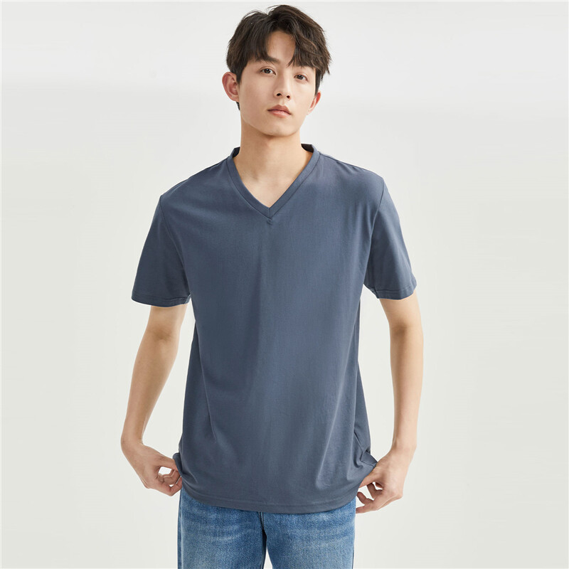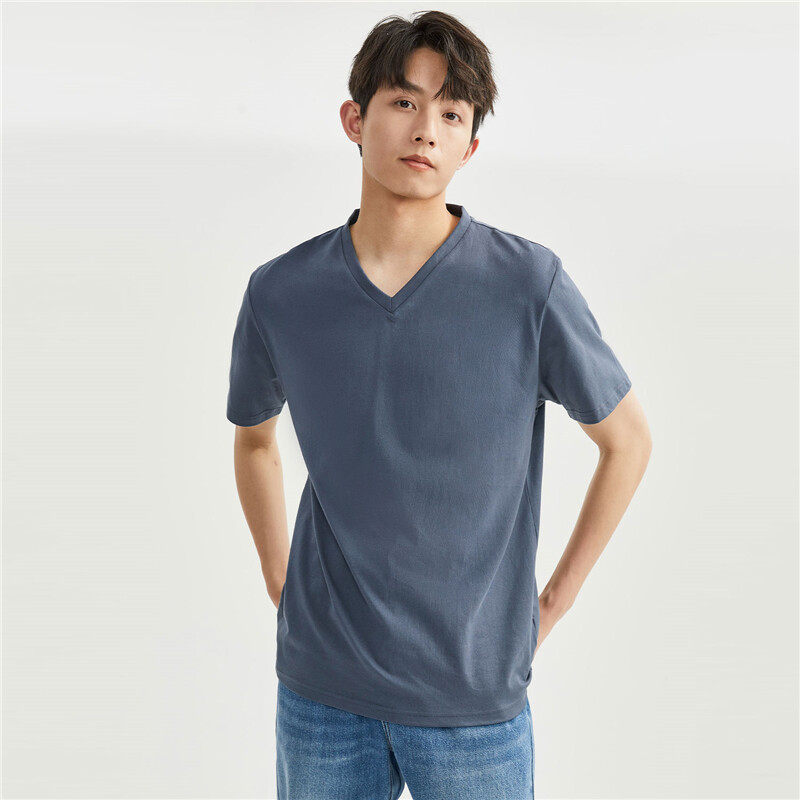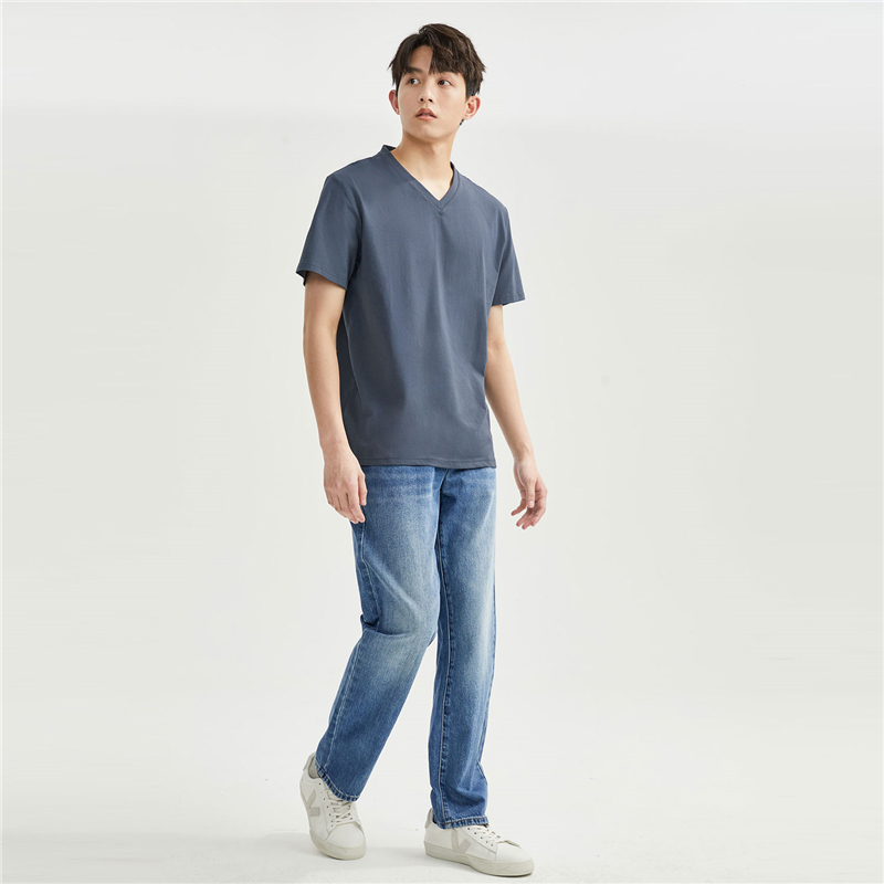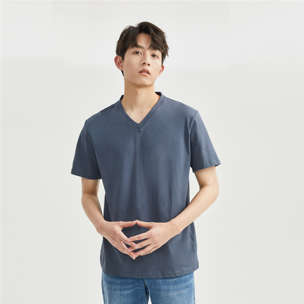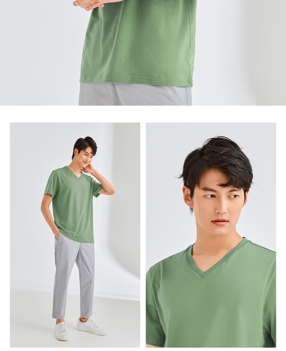 纯棉针织纯色V领短袖T恤