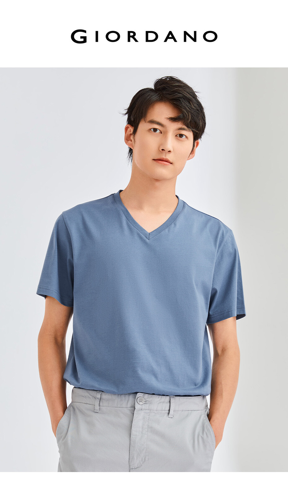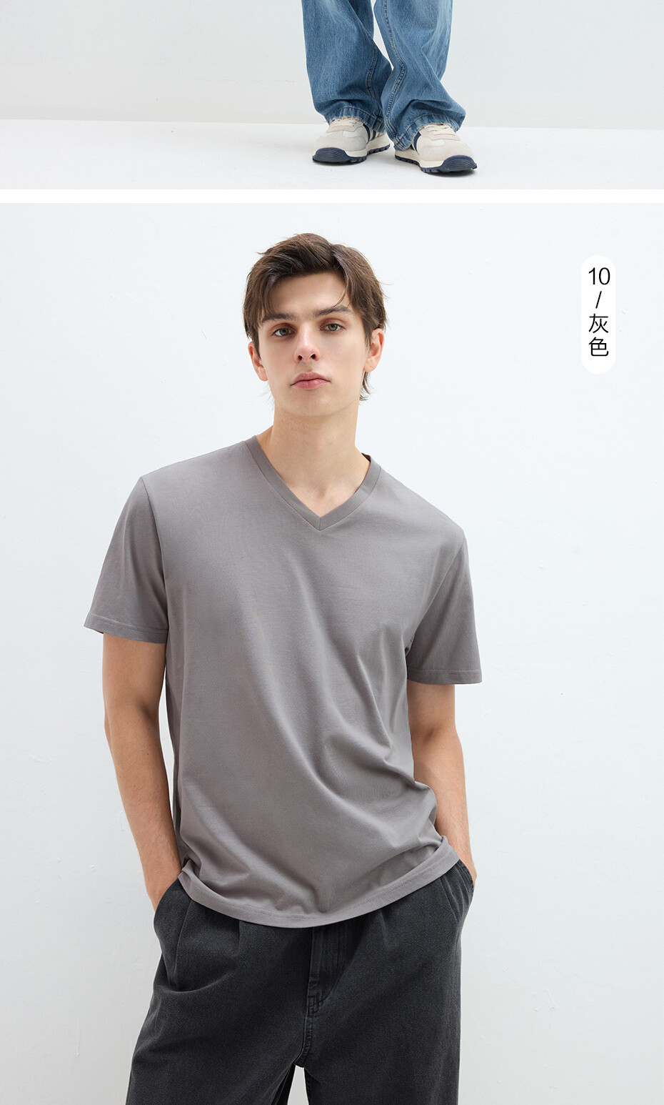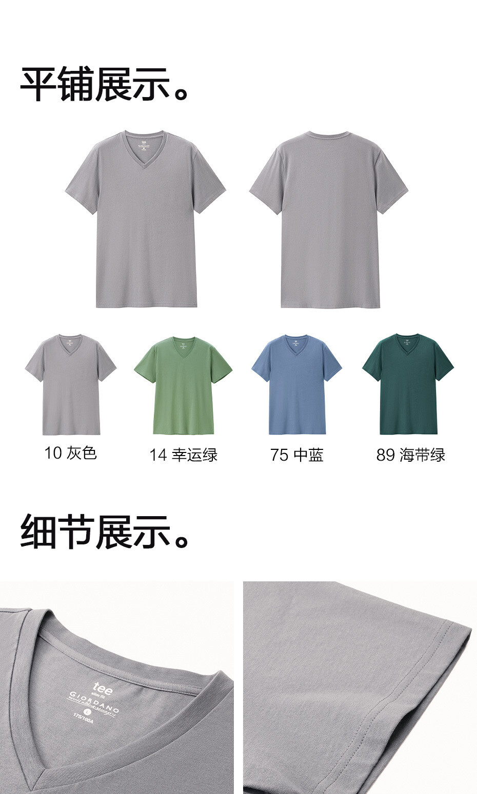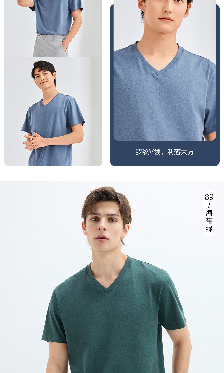 纯棉针织纯色V领短袖T恤