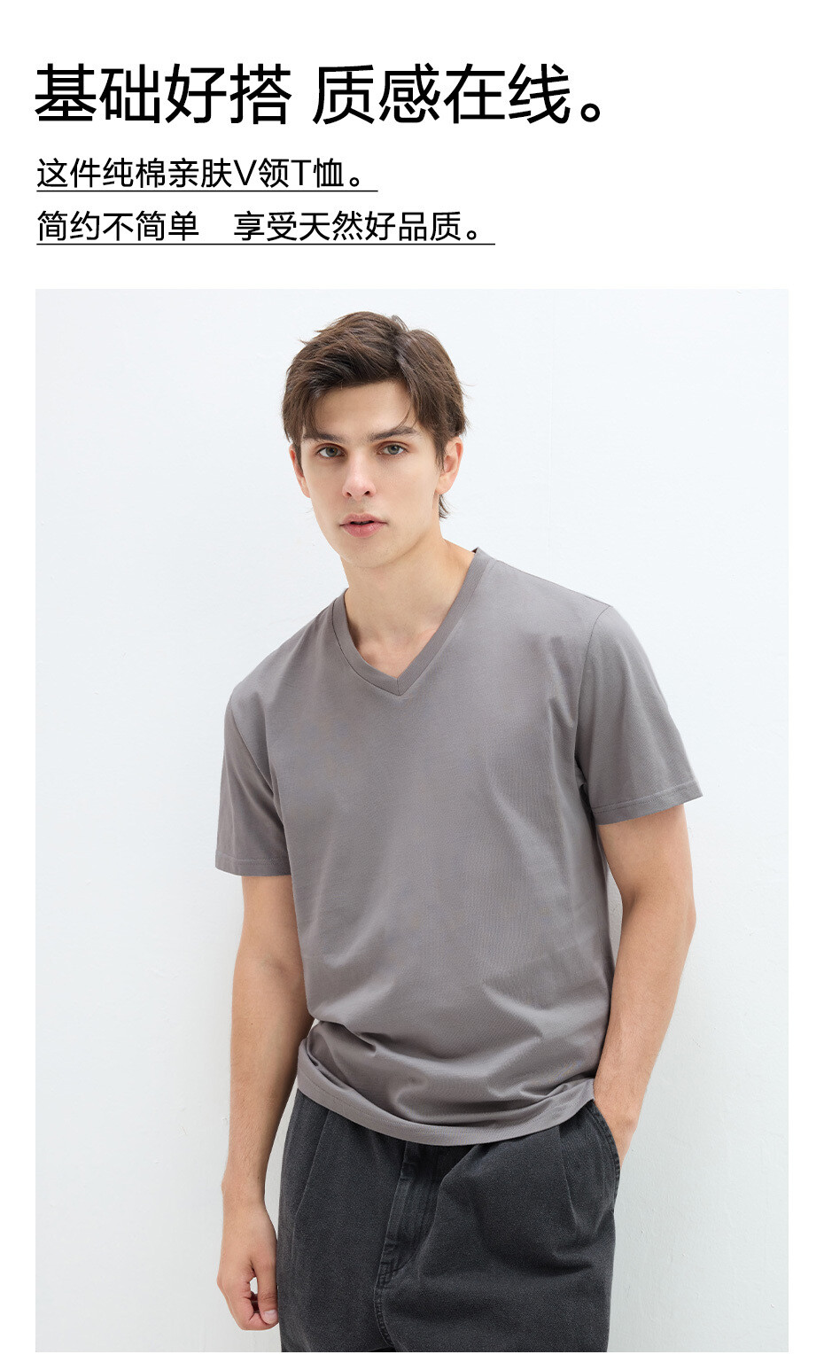 100%棉面料,质感细腻,舒适耐穿;罗纹V领,不易变形,斯文有型;经典纯色,休闲简约,契合不同穿搭风格.