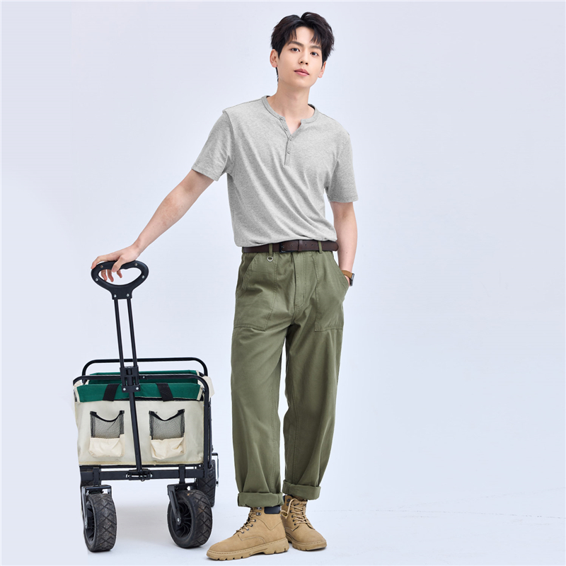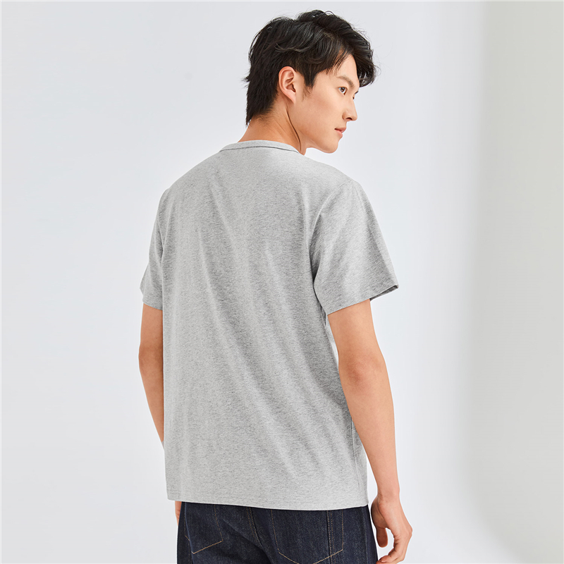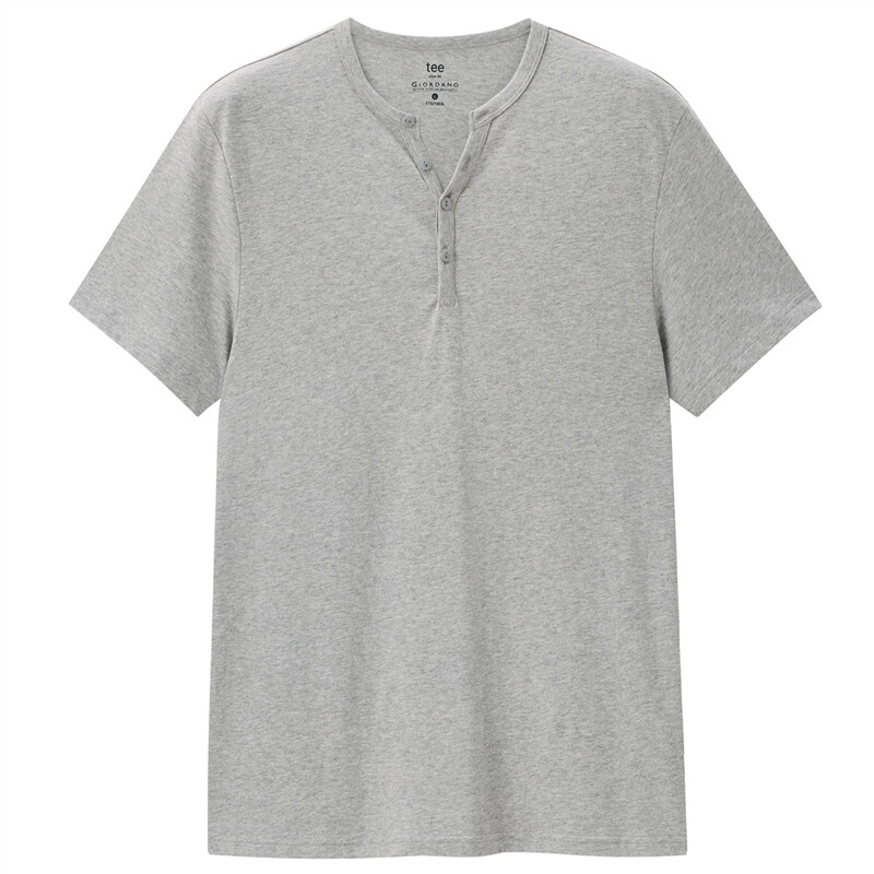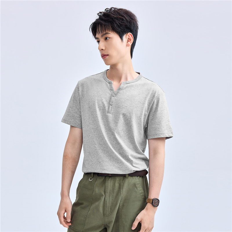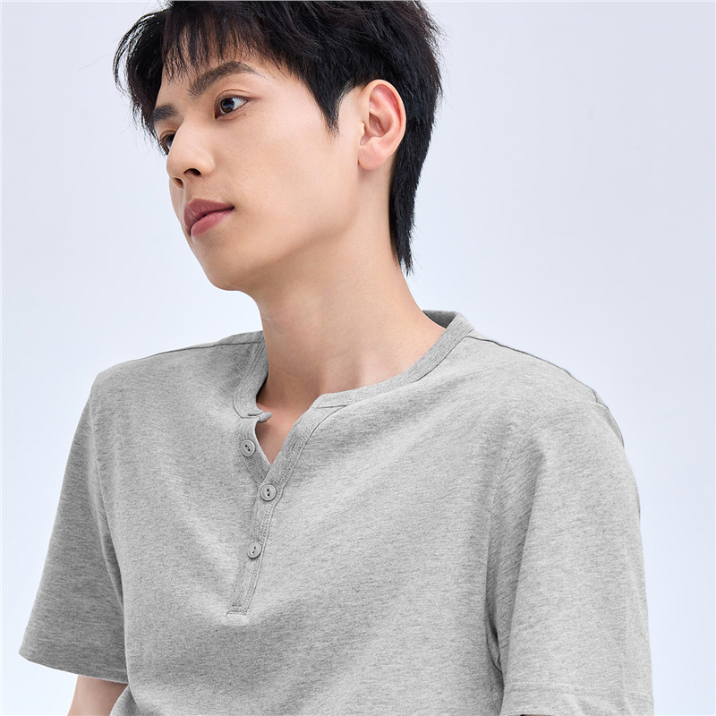 纯棉针织纯色亨利领短袖T恤