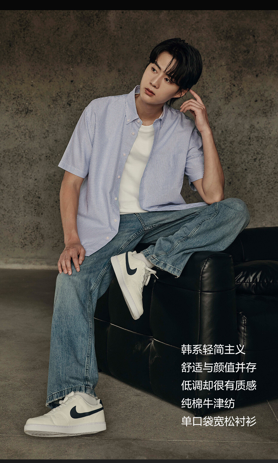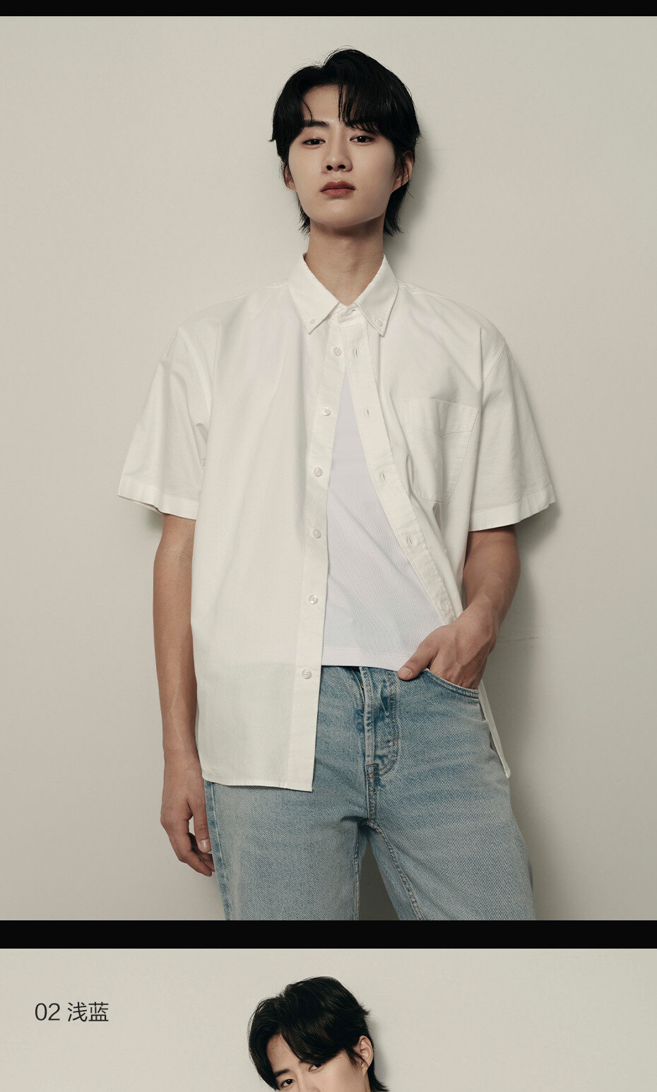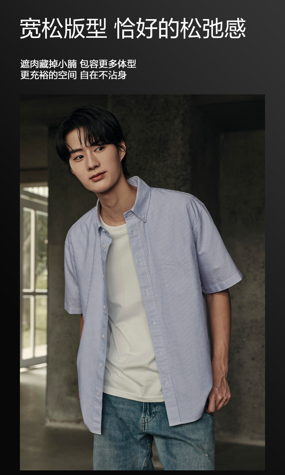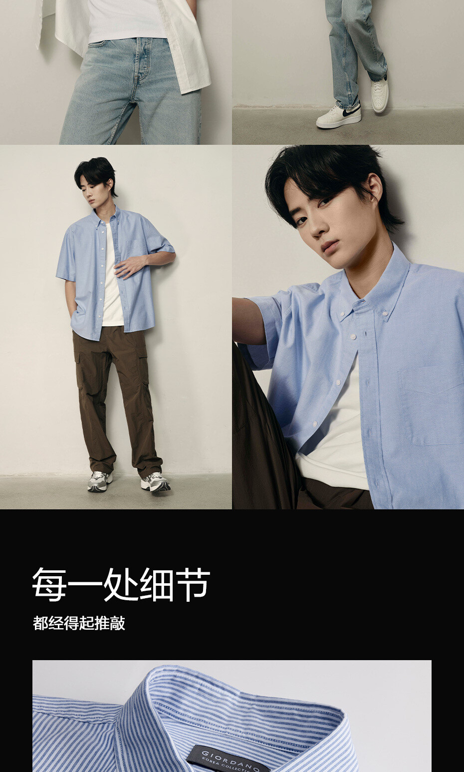 【韩国同款】佐丹奴夏季纯棉牛津纺单口袋宽松短袖衬衫
