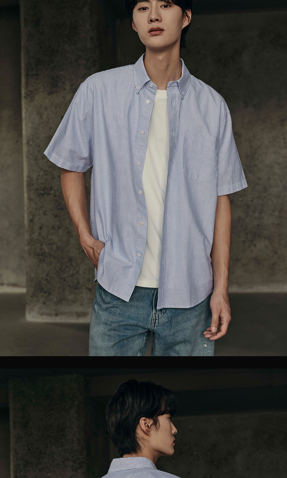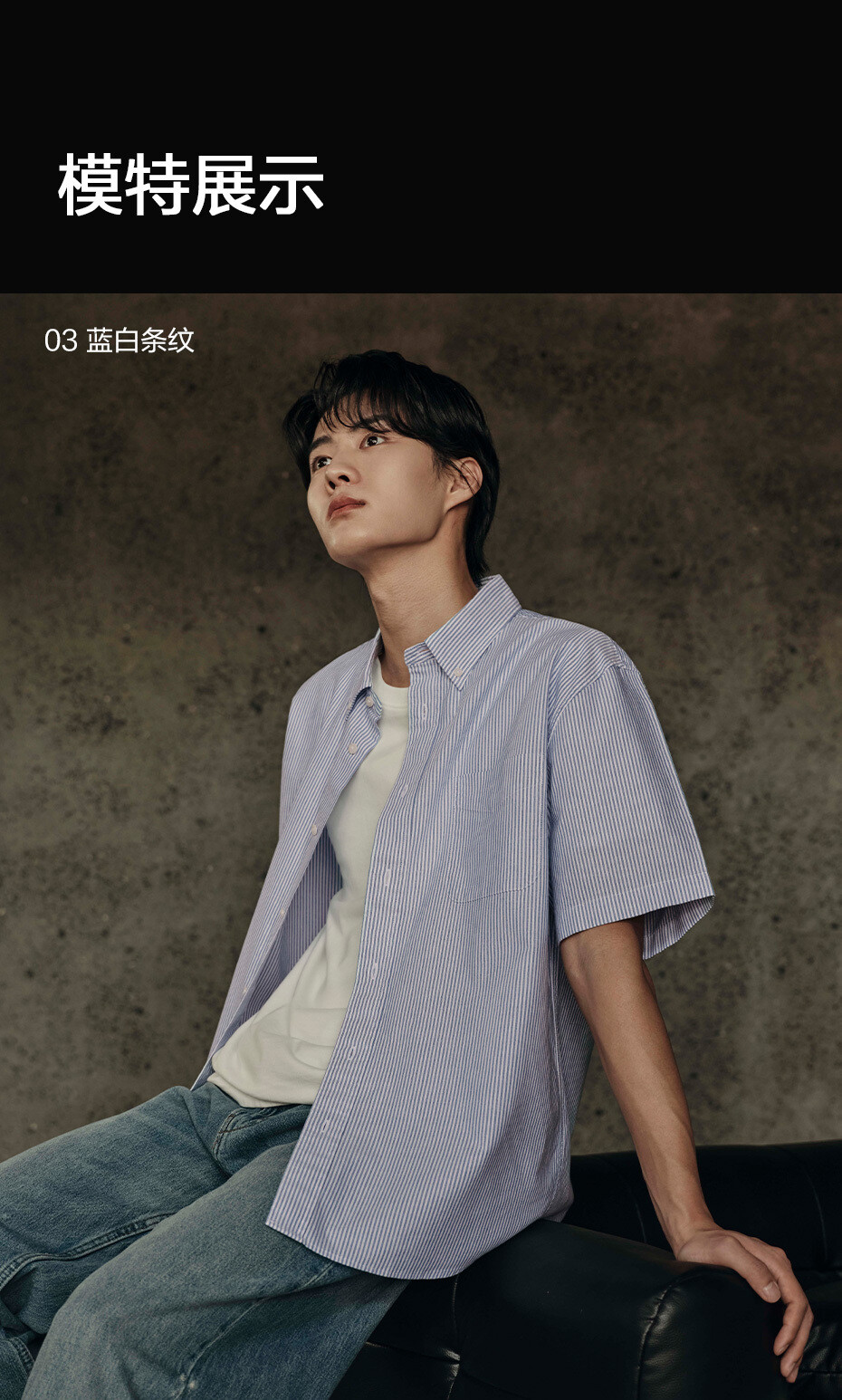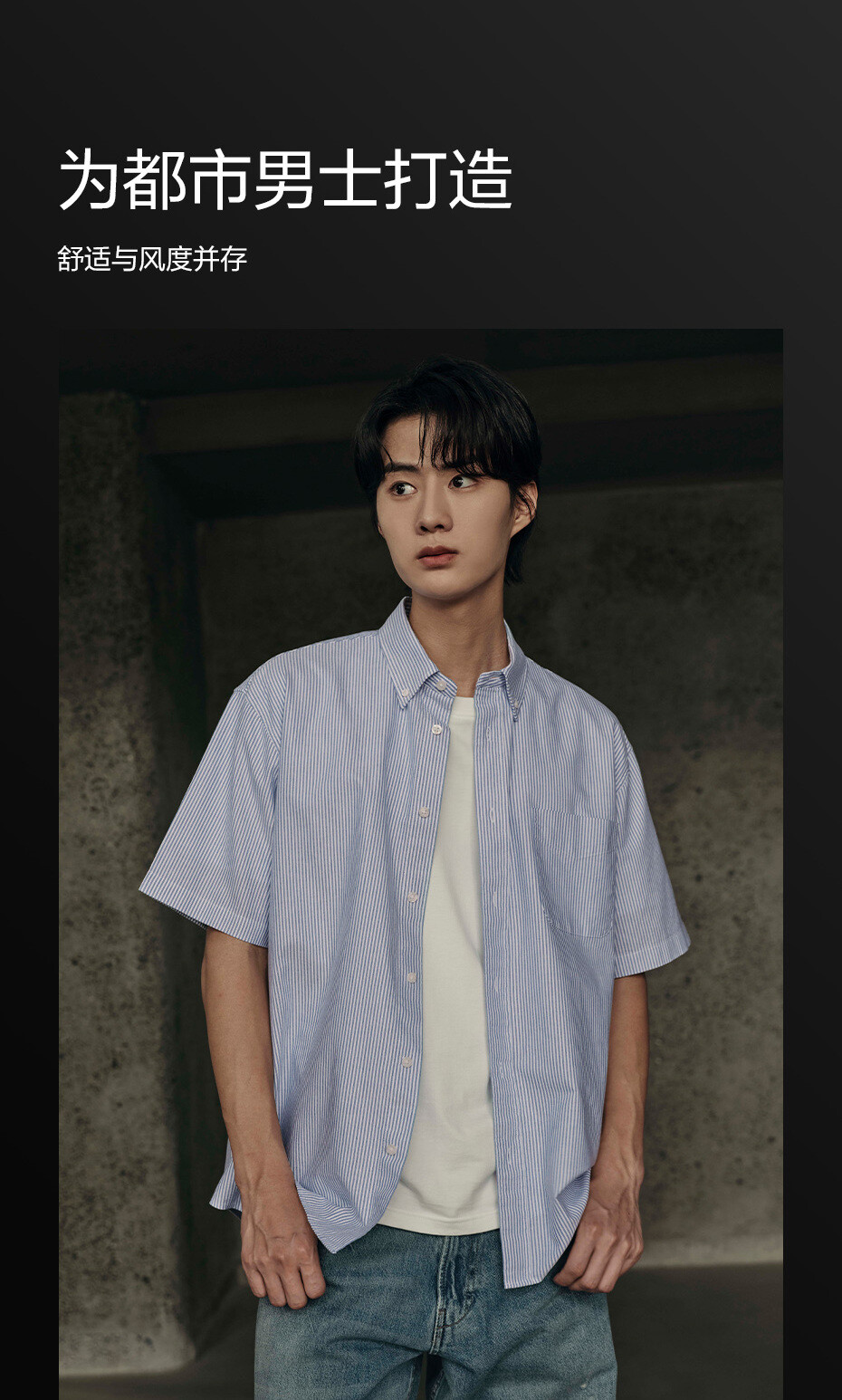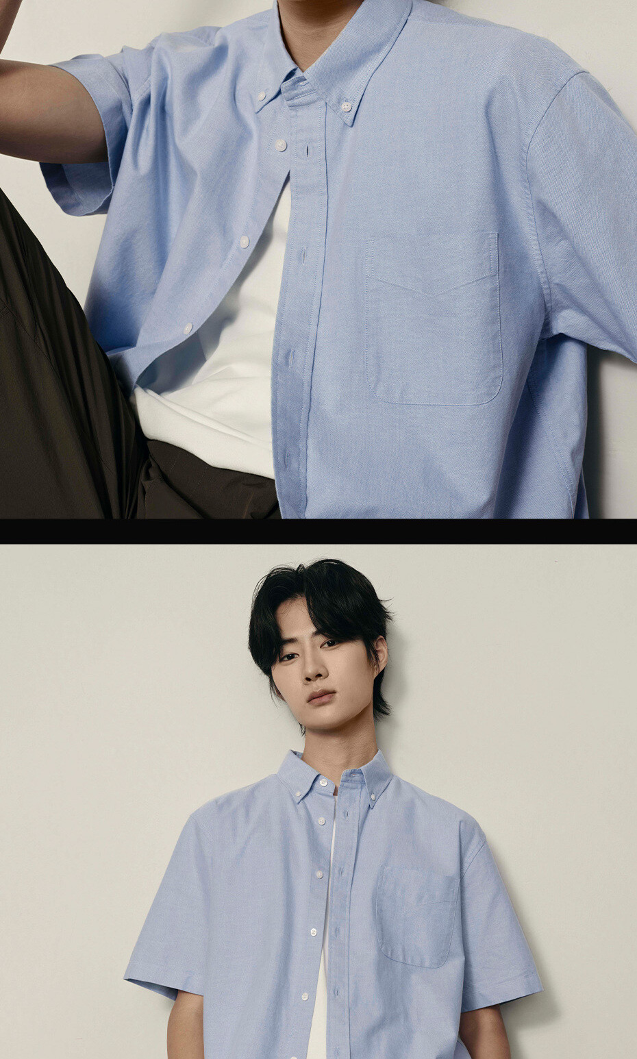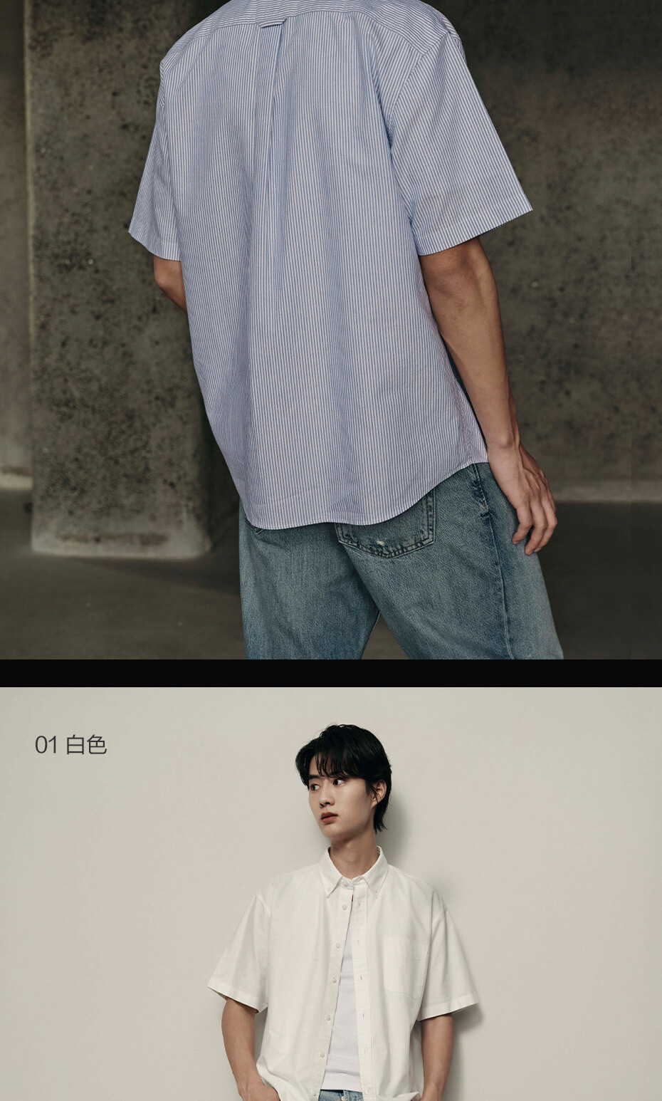 【韩国同款】佐丹奴夏季纯棉牛津纺单口袋宽松短袖衬衫
