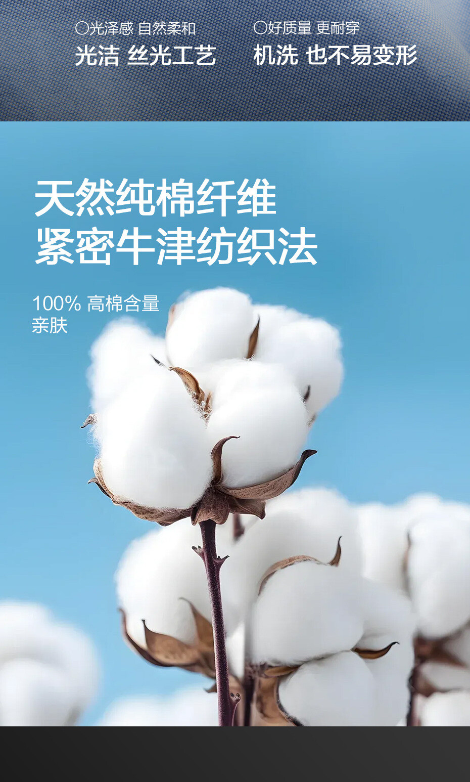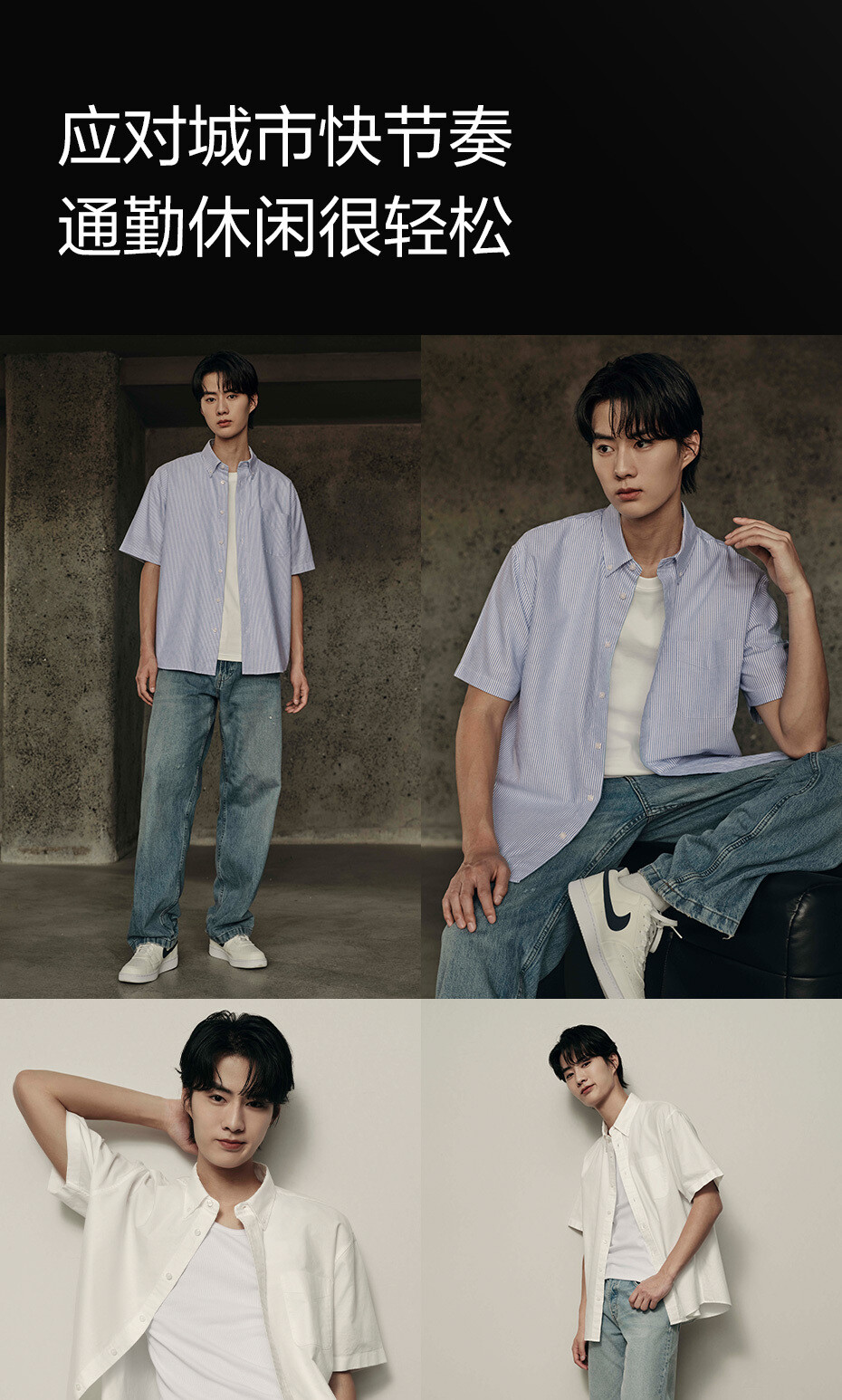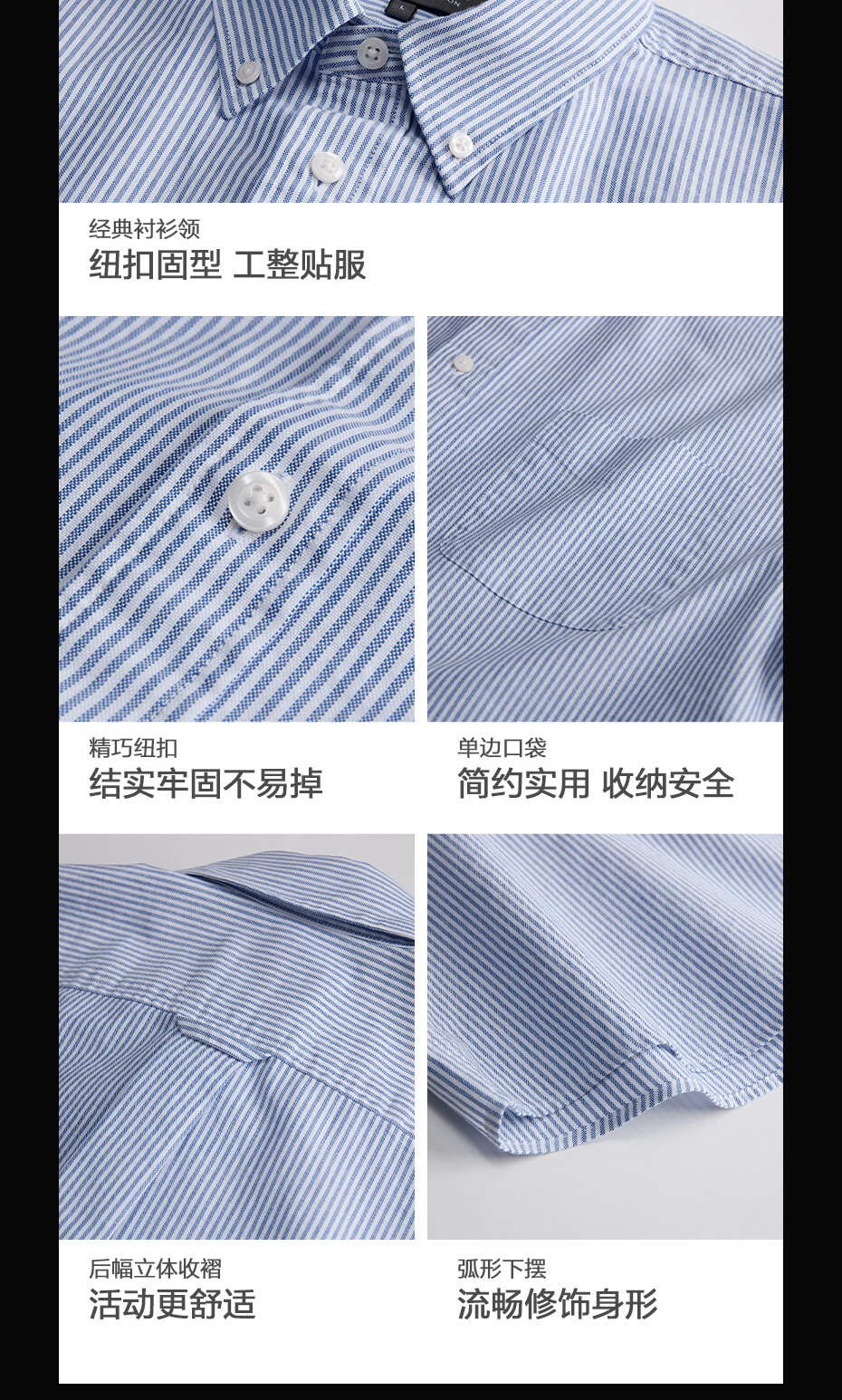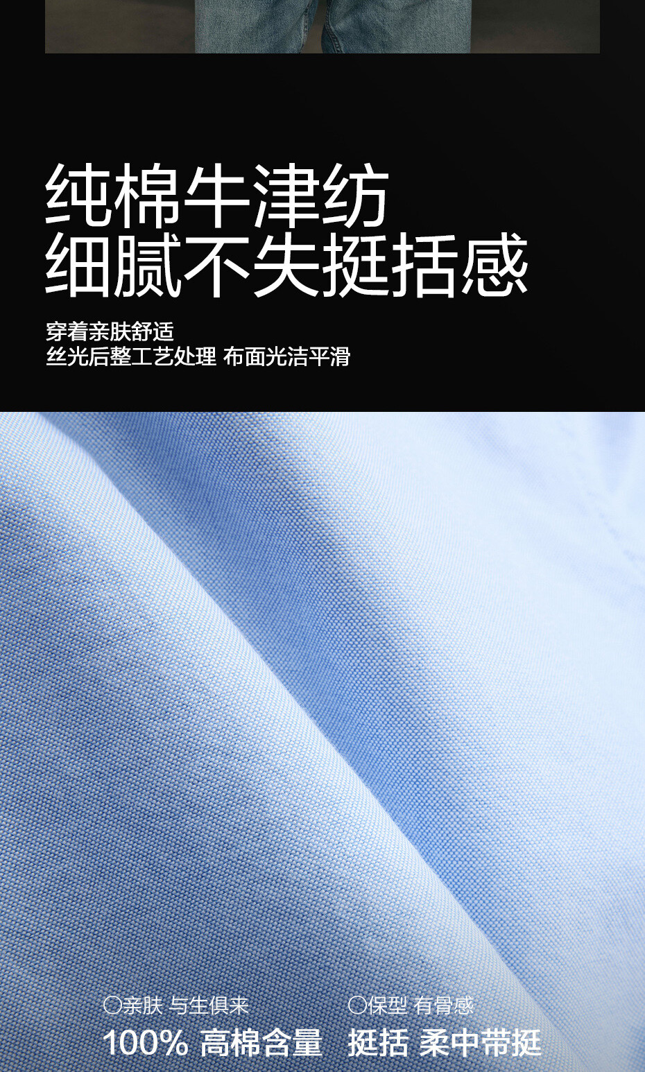 100%棉牛津纺,紧密挺括;经典衬衫领,纽扣固型,工整利落;单边口袋,收纳方便,美观实用;弧形下摆,线条流畅,休闲有型。