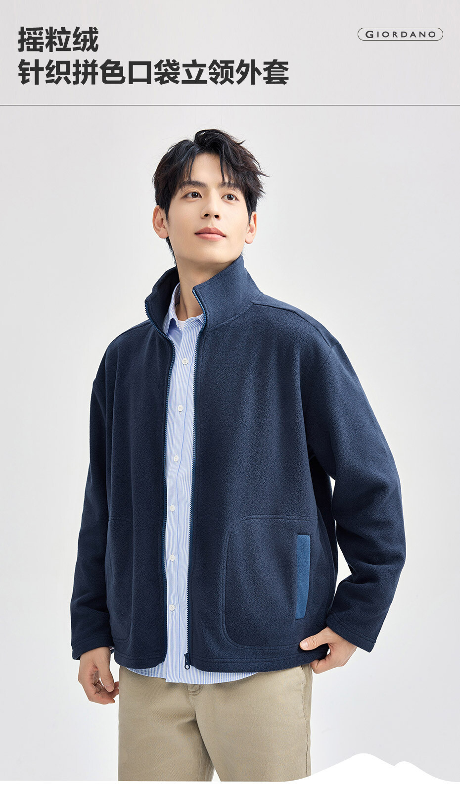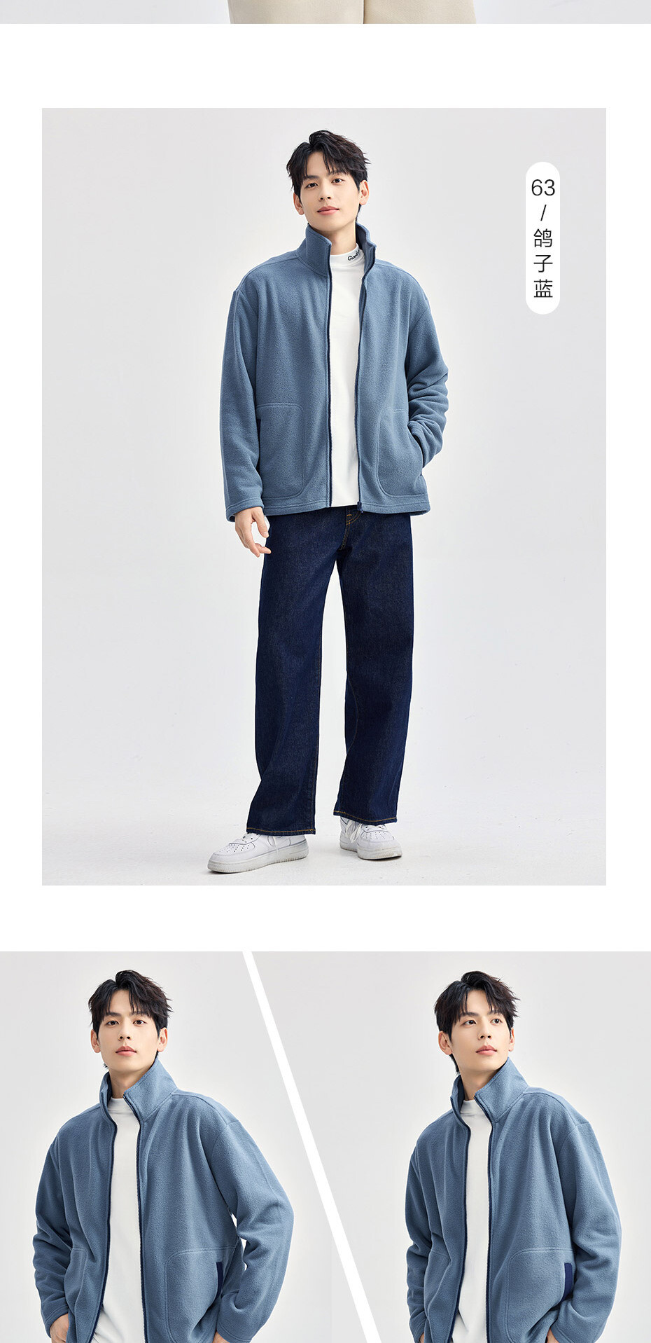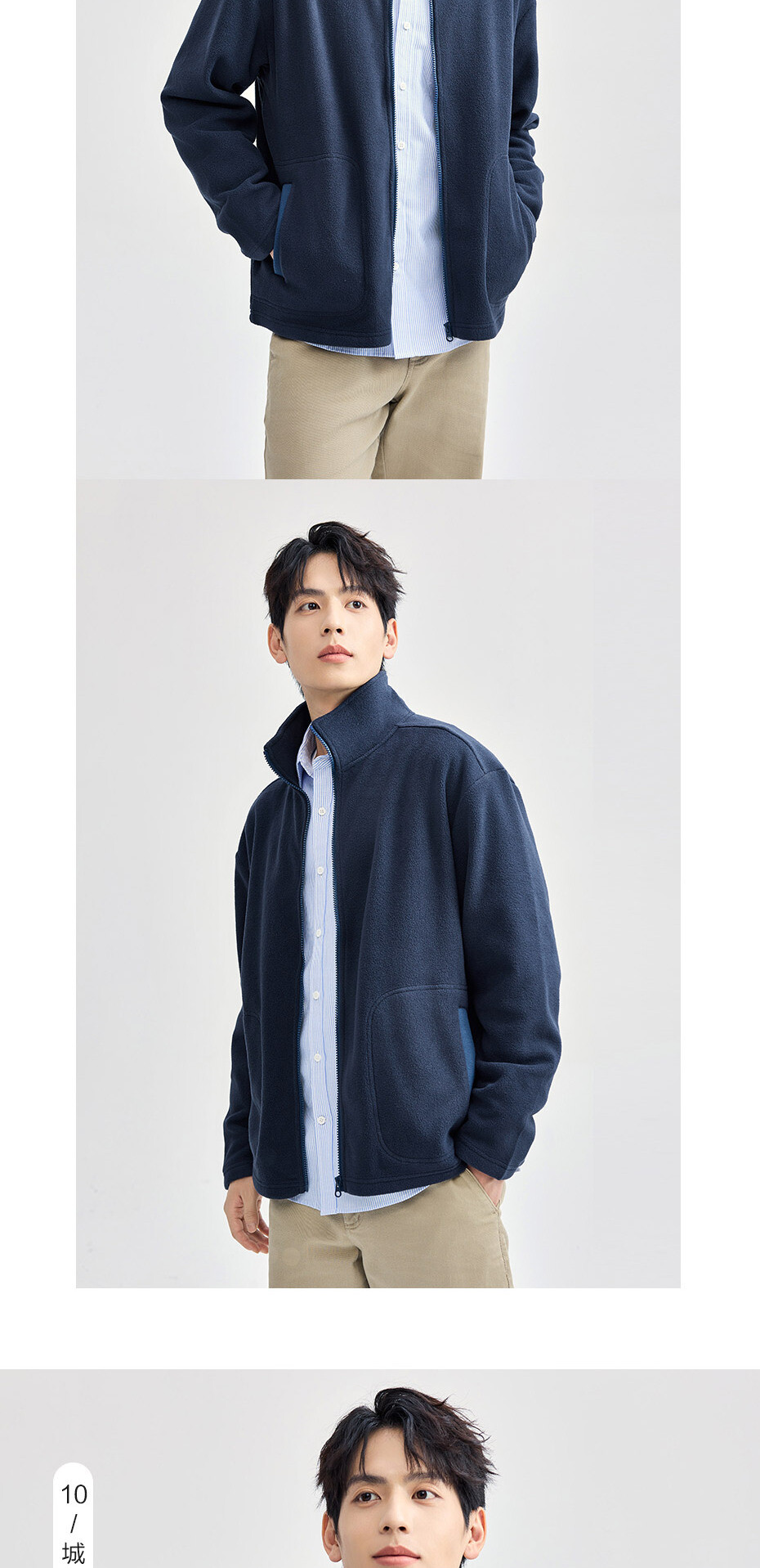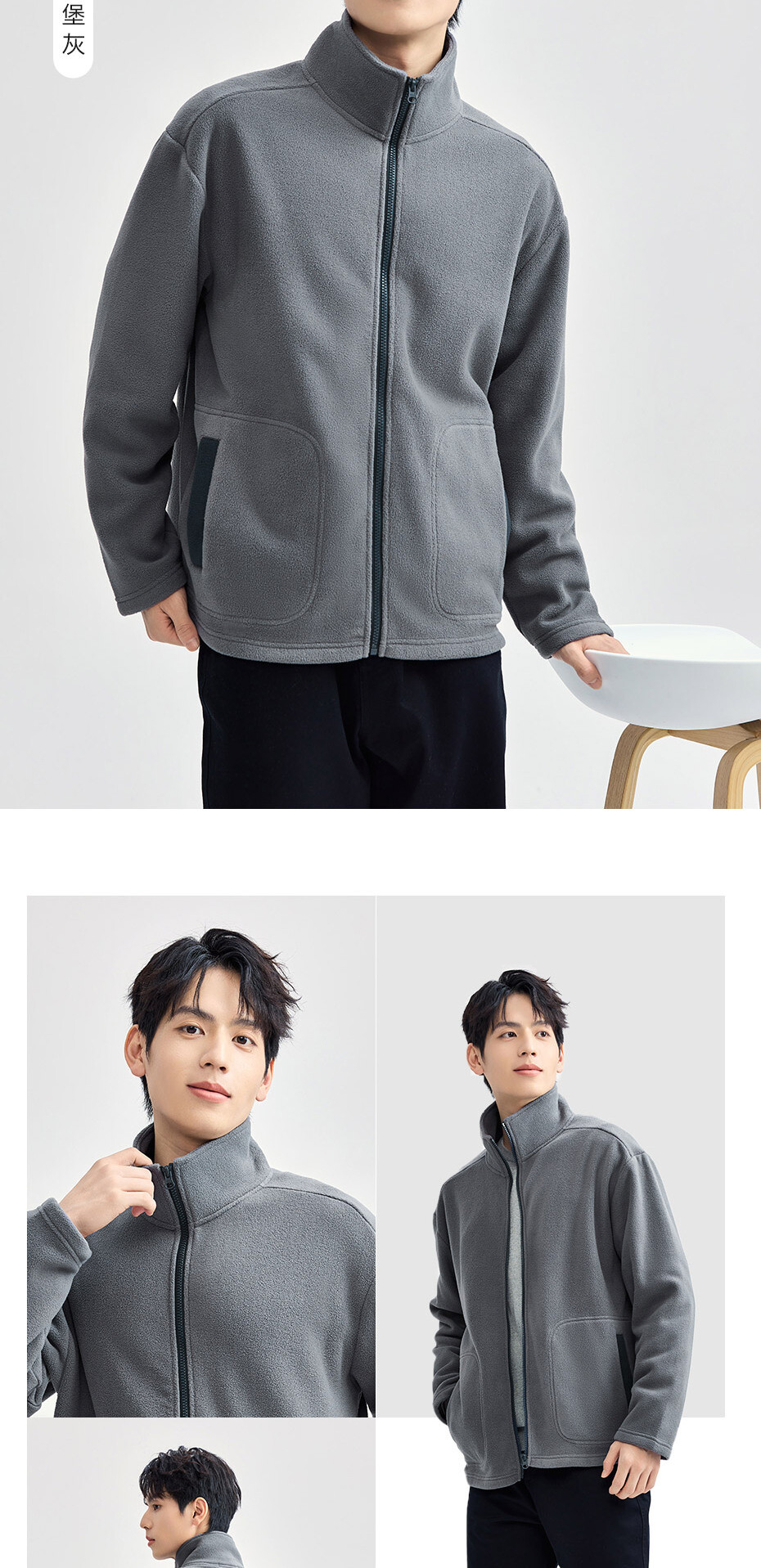 摇粒绒面料,柔软温暖;立领设计,保暖颈项,造型感十足;拉链门襟,顺畅易拉,品质保证;拼色口袋,收纳方便,时尚实用。