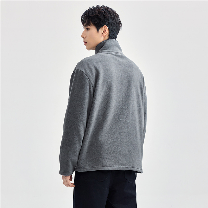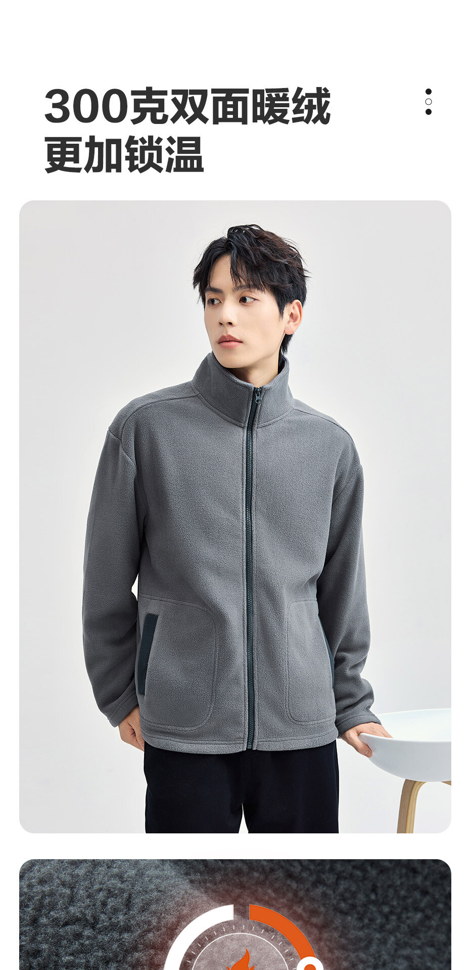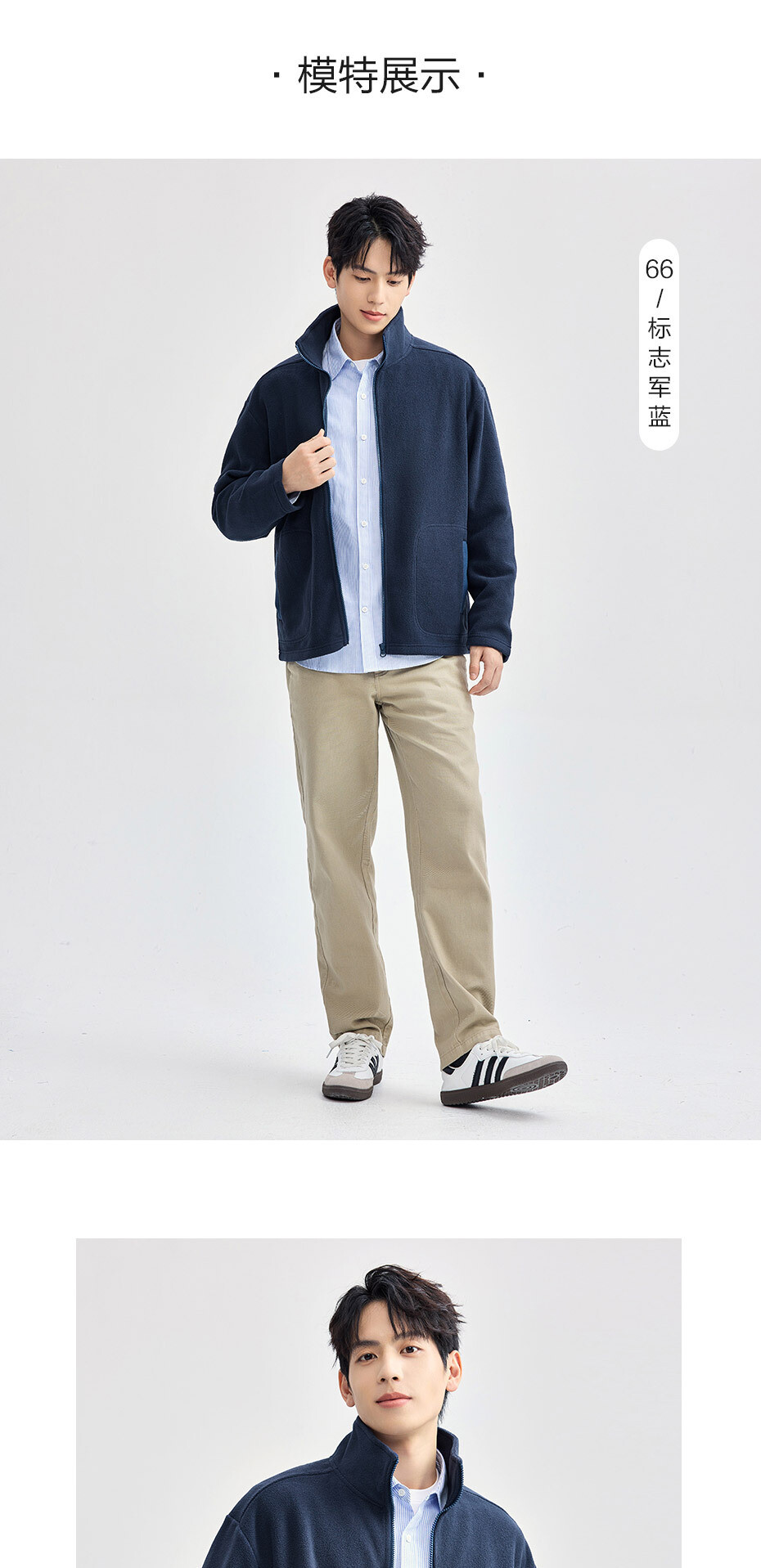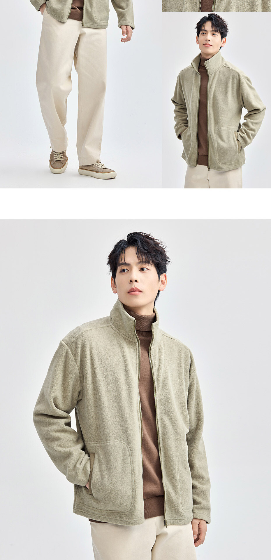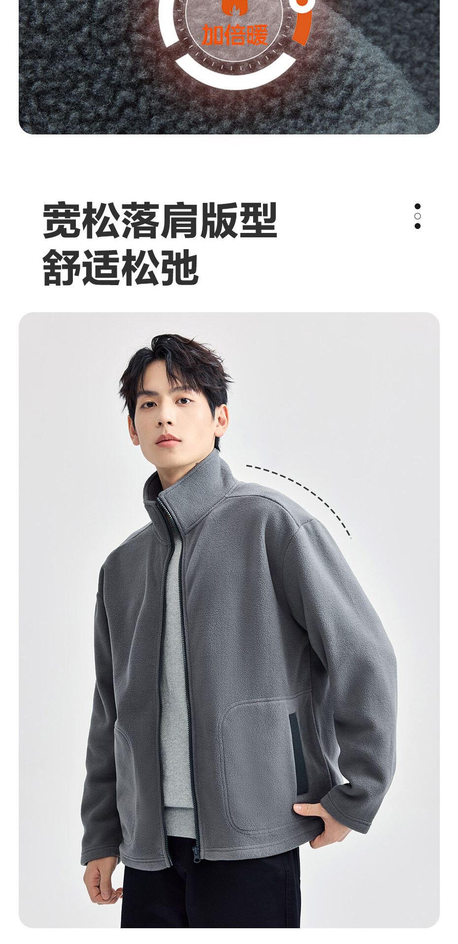 摇粒绒面料,柔软温暖;立领设计,保暖颈项,造型感十足;拉链门襟,顺畅易拉,品质保证;拼色口袋,收纳方便,时尚实用。