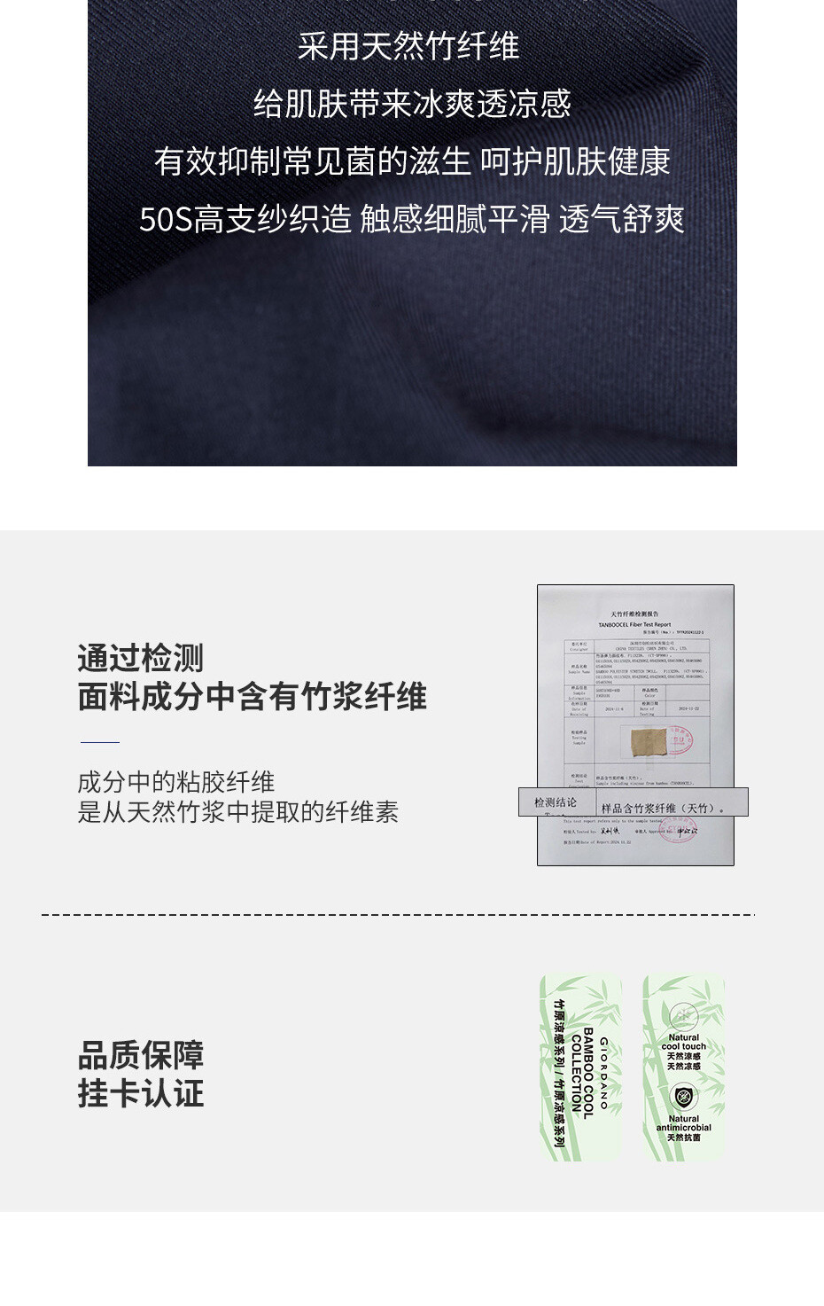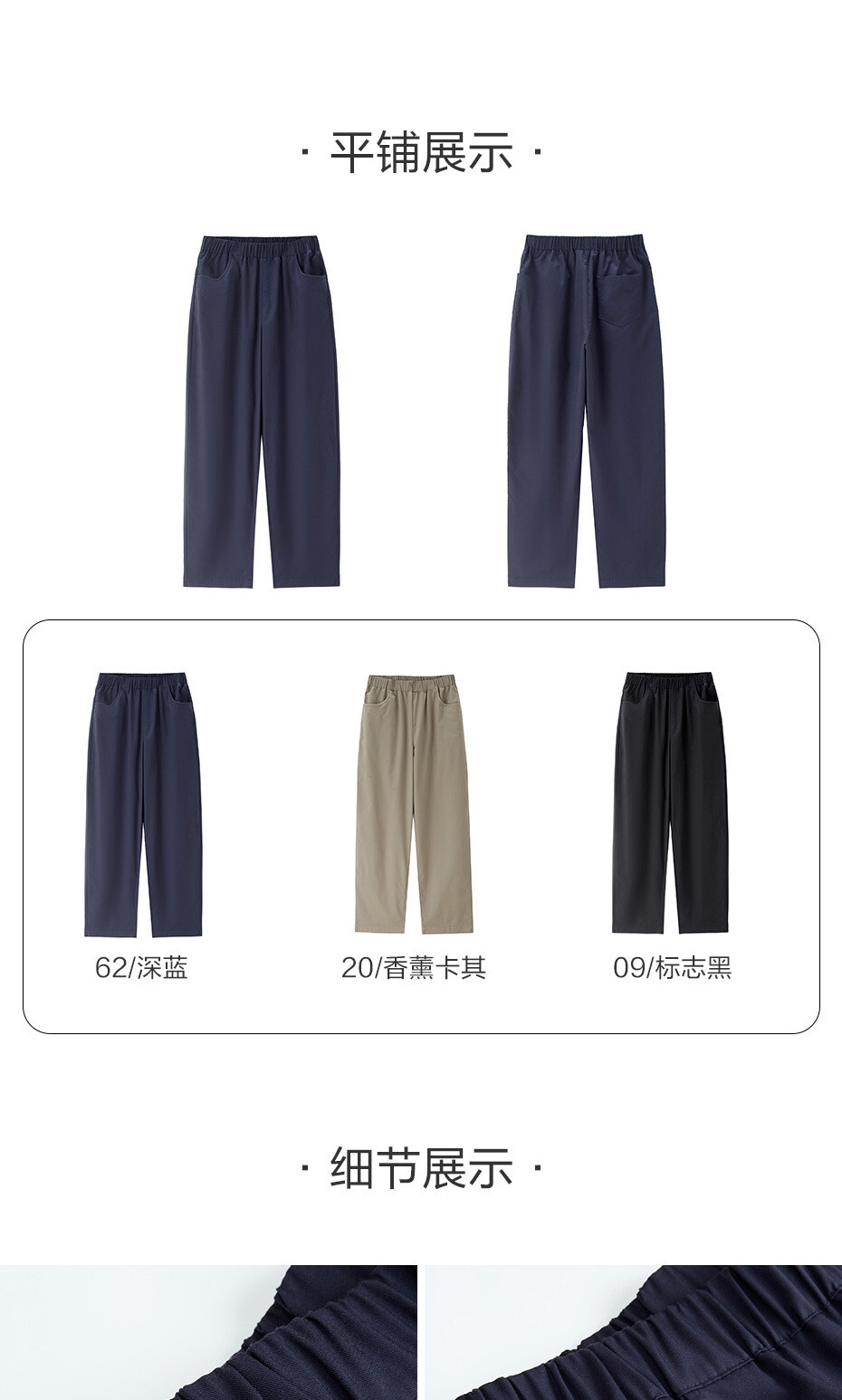 黑科技凉感面料,有效抗菌,酷爽卫生;松紧腰头,包容有度,舒适易穿;口袋设计,收纳方便,美观实用。