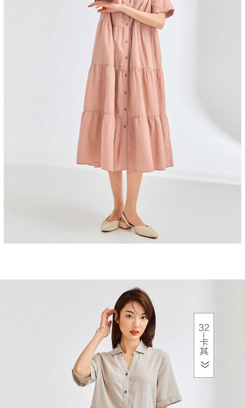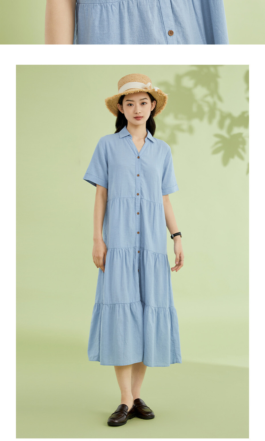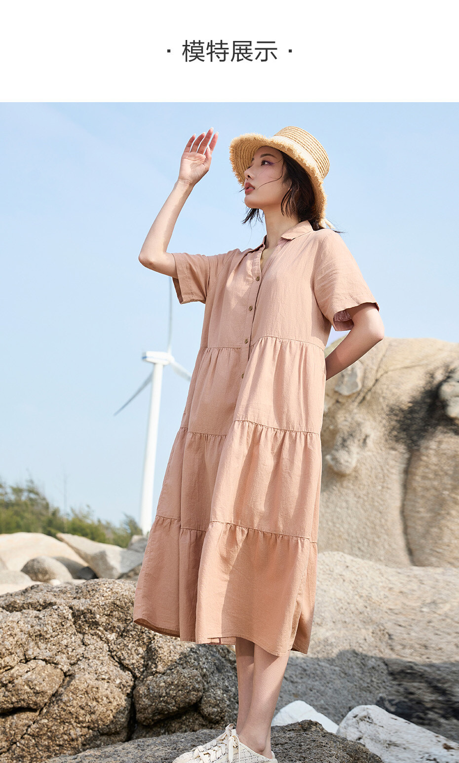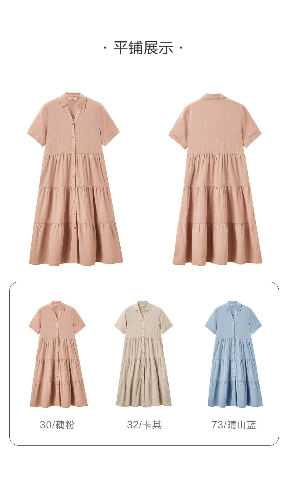 天然麻棉梭织宽松薄短袖衬衫蛋糕连衣裙