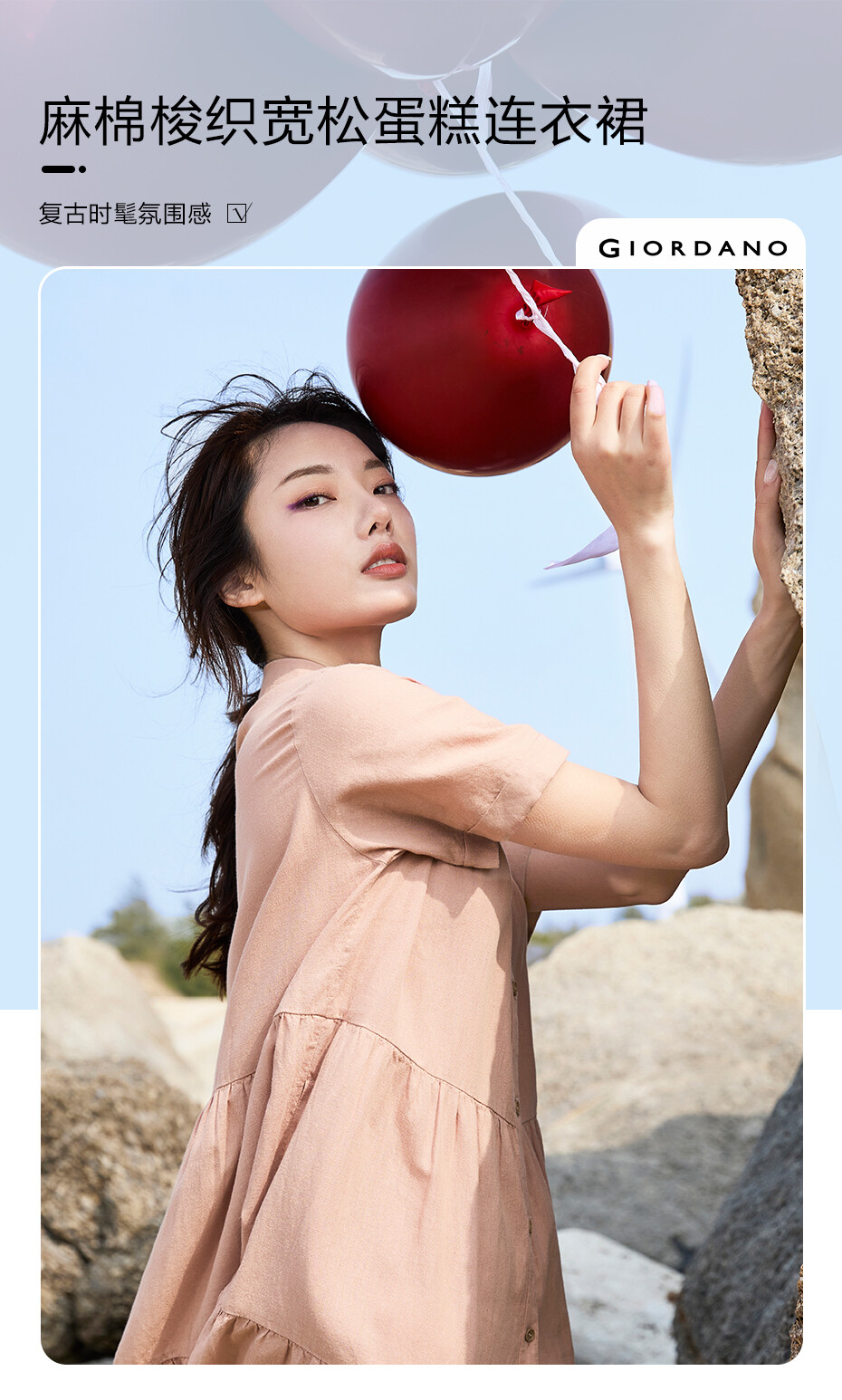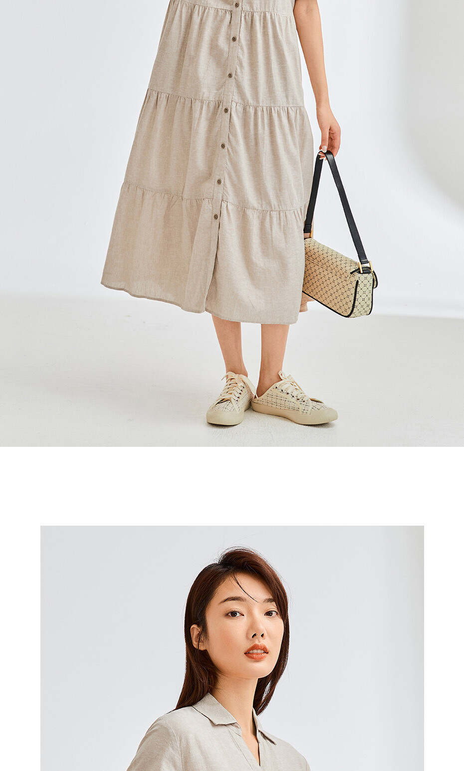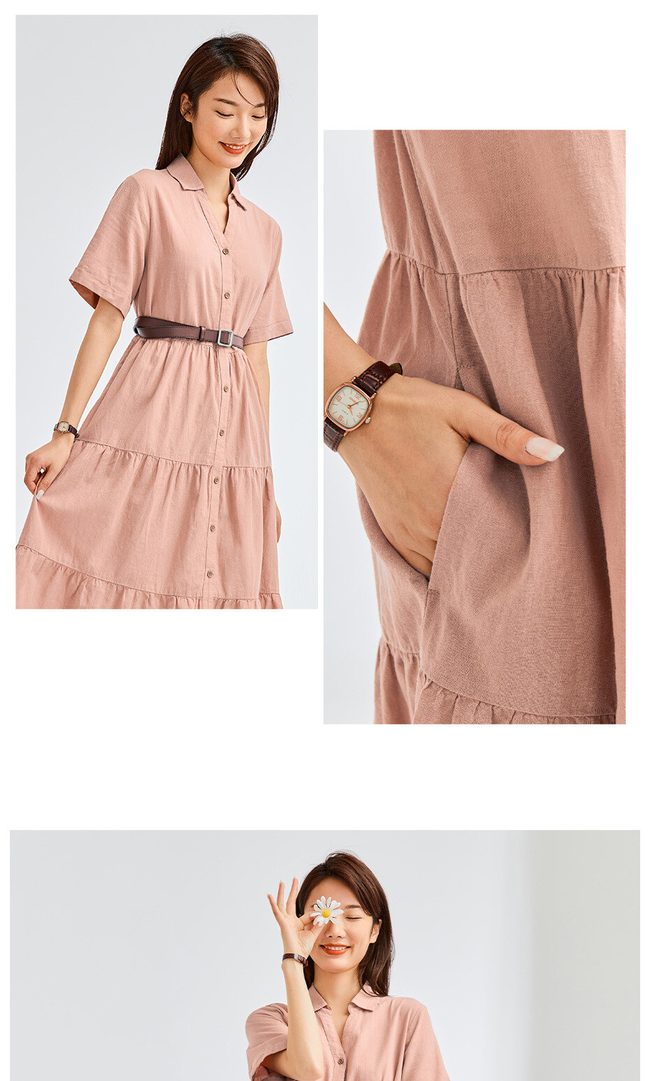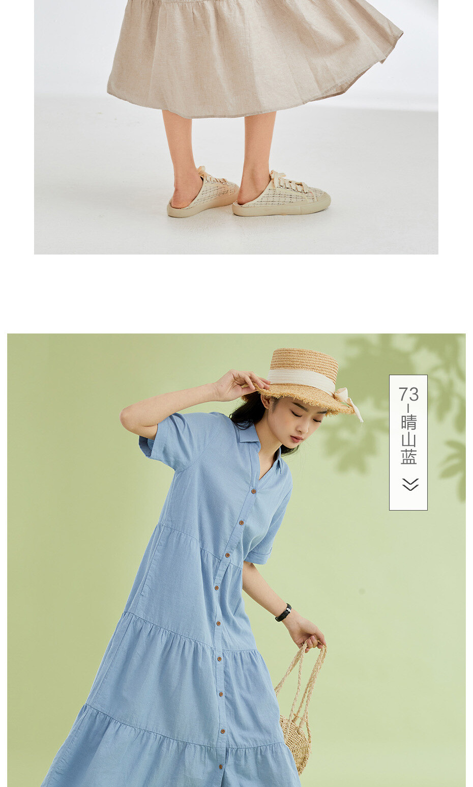 天然麻棉梭织宽松薄短袖衬衫蛋糕连衣裙