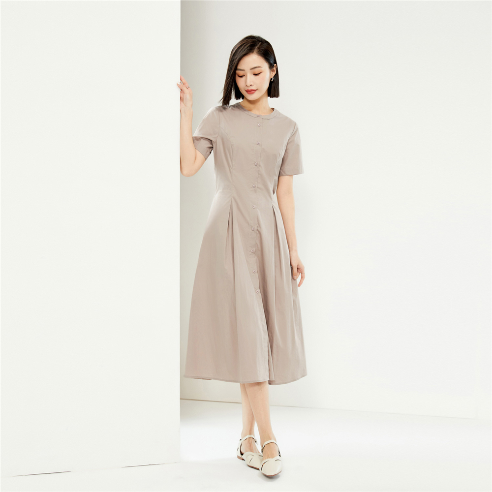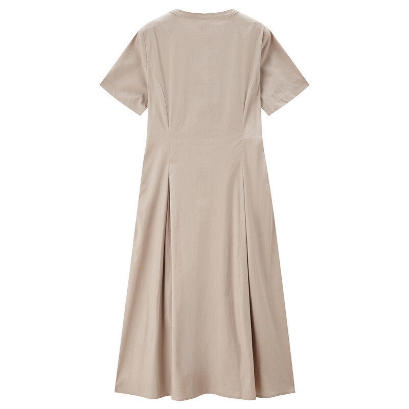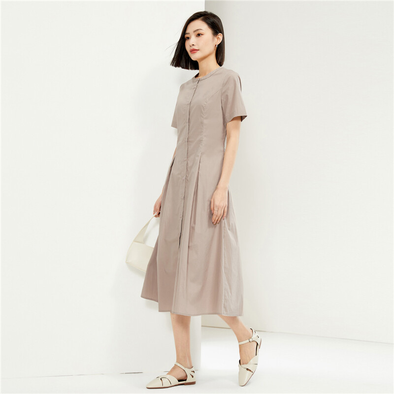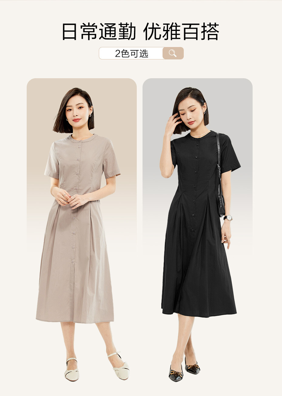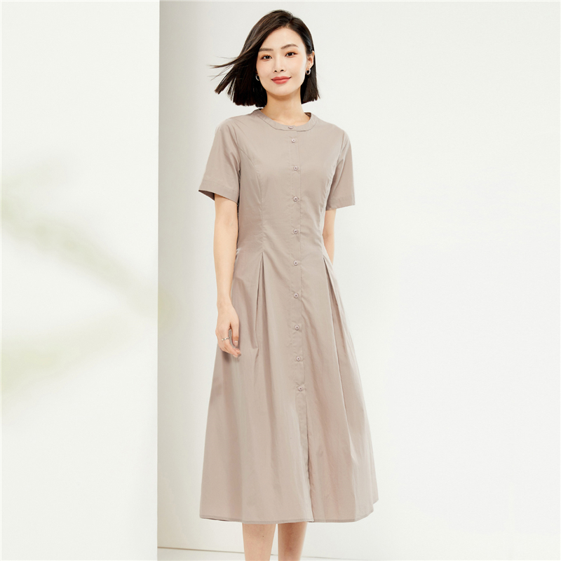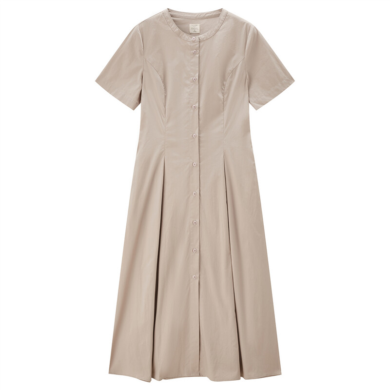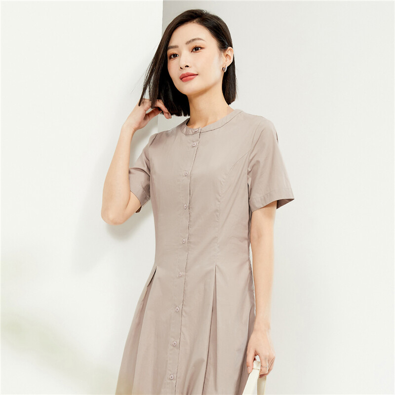 纯棉府绸梭织收腰圆领衬衫连衣裙
