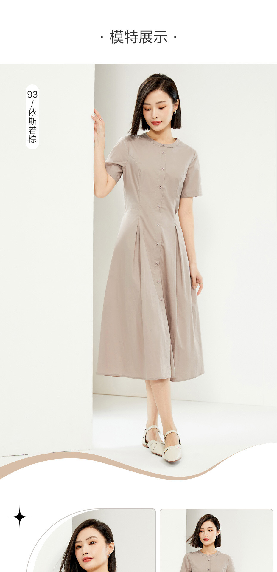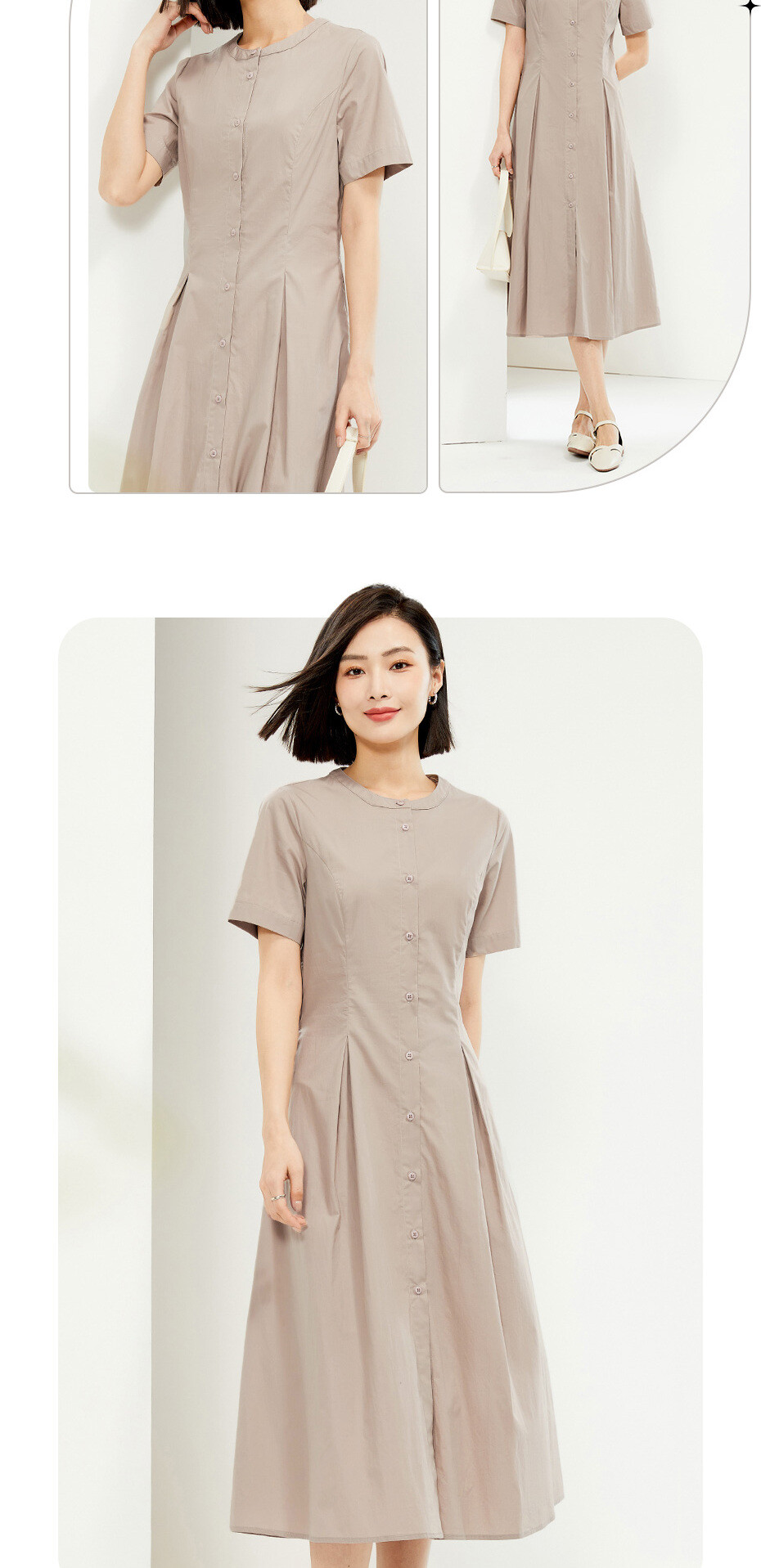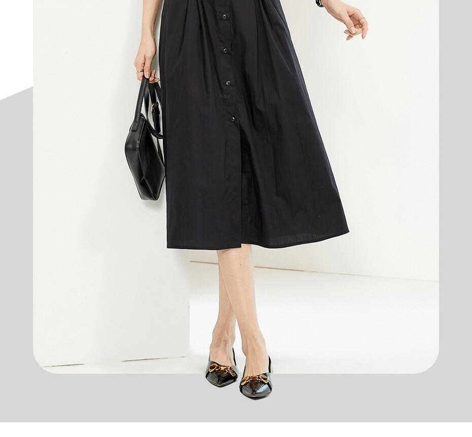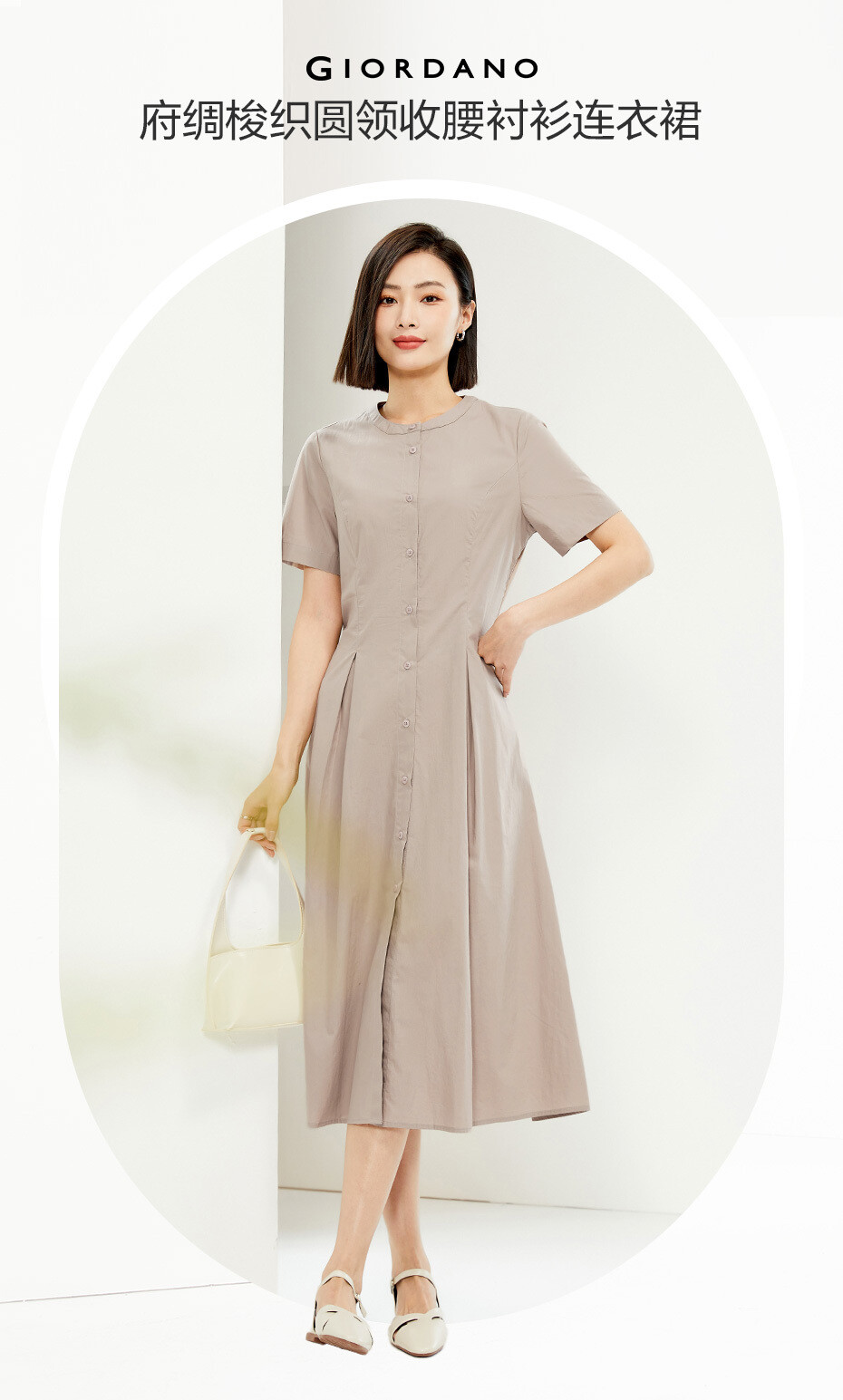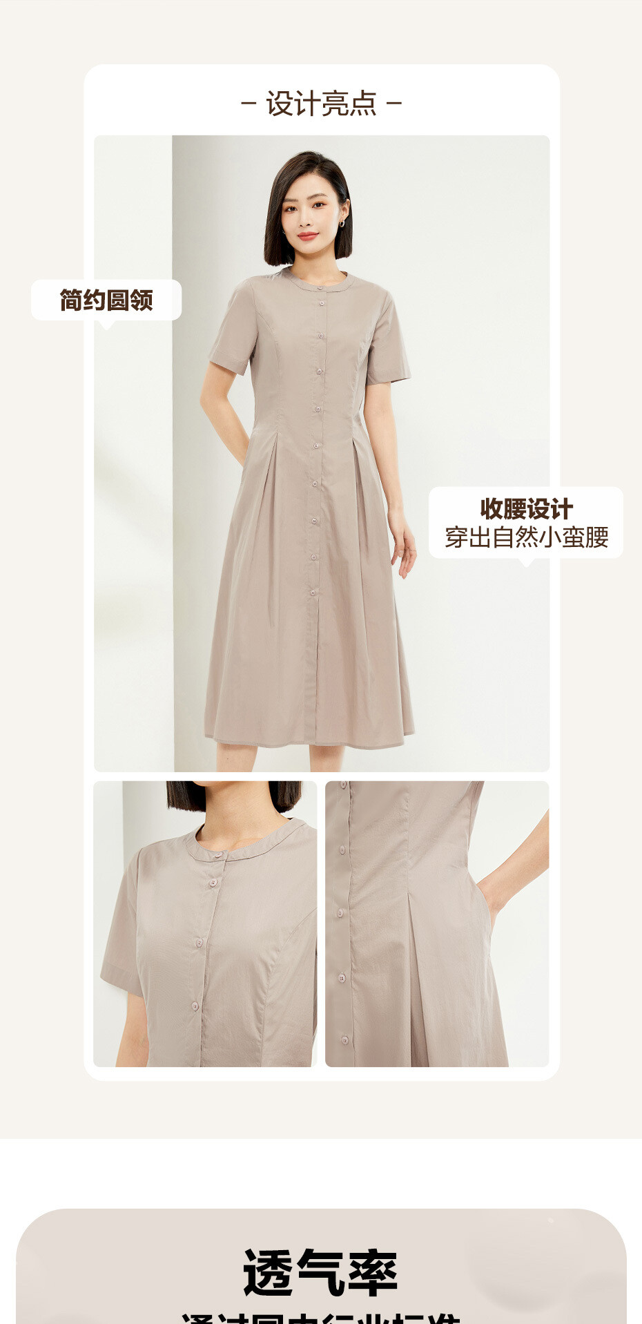 纯棉府绸梭织收腰圆领衬衫连衣裙