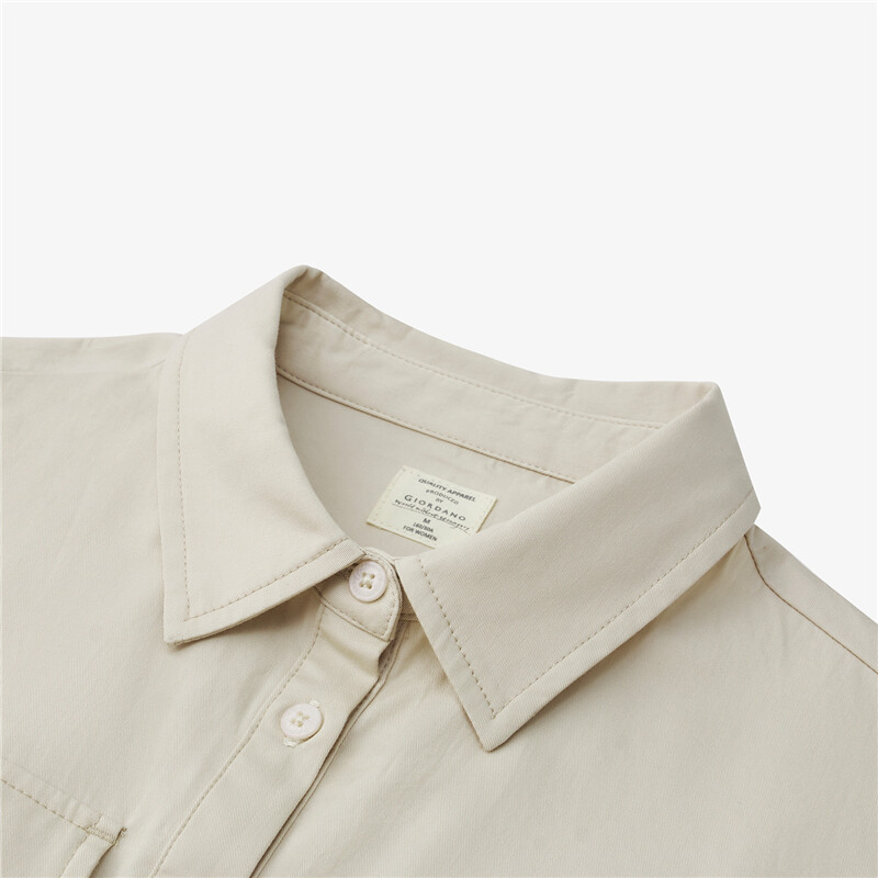 100%棉面料,质感细腻,轻薄不闷热;经典衬衫领,型格工整,干净利落;纽扣门襟,结实牢固,穿脱方便;工装口袋,收纳安全,时髦有范。