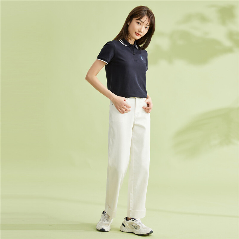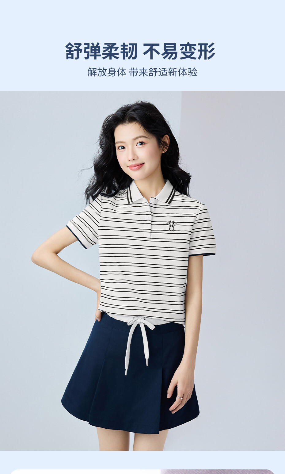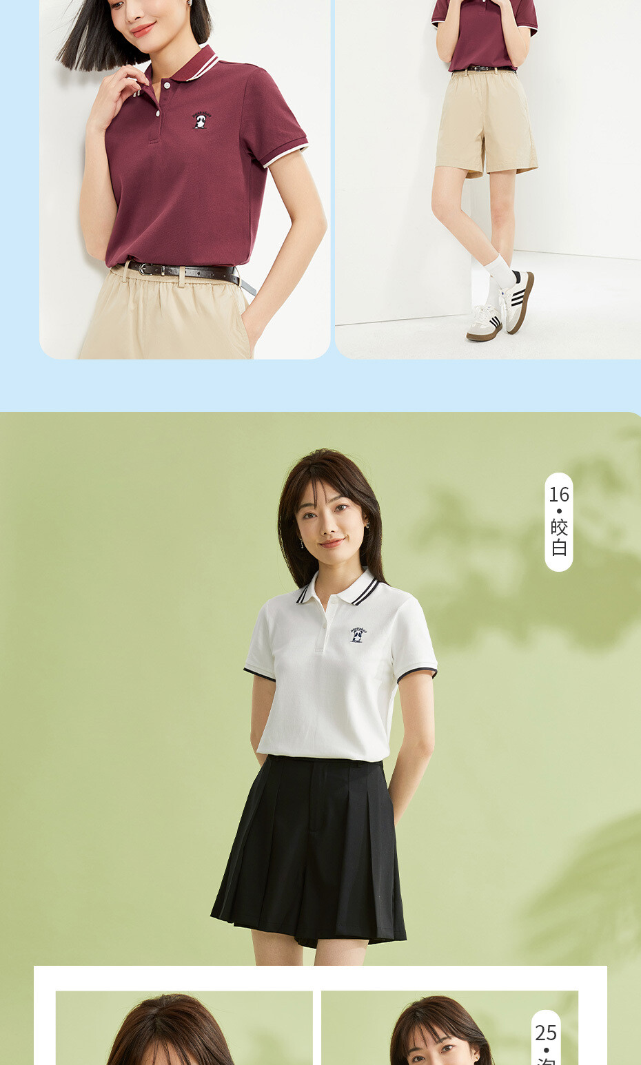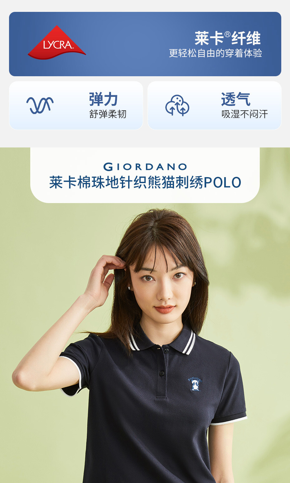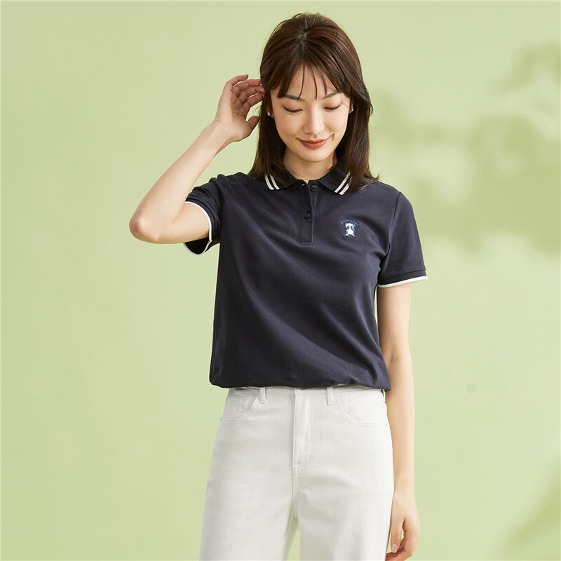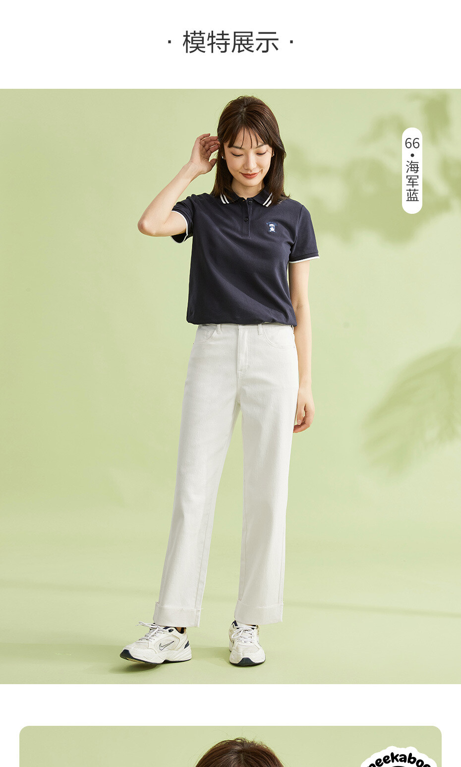 莱卡棉珠地布,质感细腻,富有弹性;撞色POLO领,型格工整,修饰颈项;罗纹袖口,不易变形,伸展自如;胸襟熊猫刺绣,小巧精致,可爱时尚。温馨提示:由于批次不同,此款25色、75色领标、纽扣颜色存在差异;不影响品质与舒适度,请放心选购。