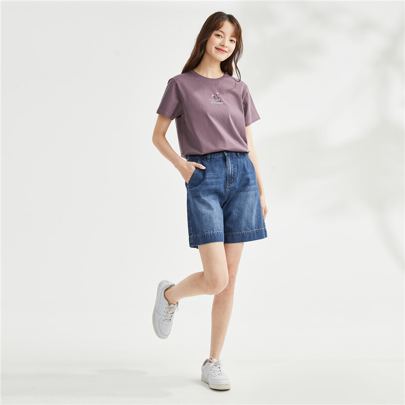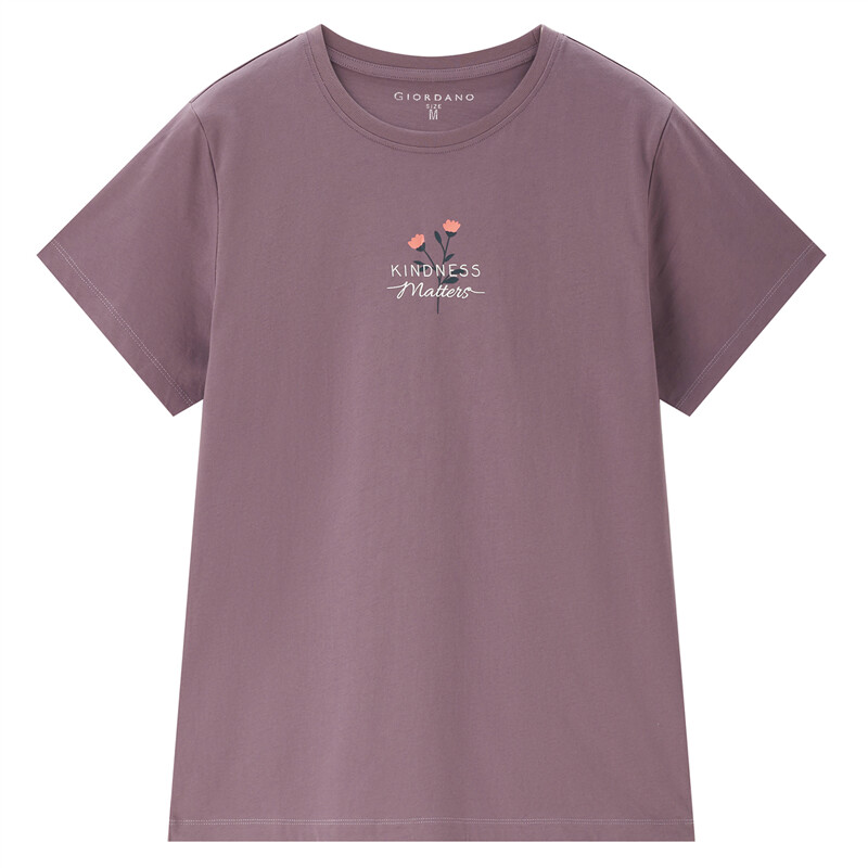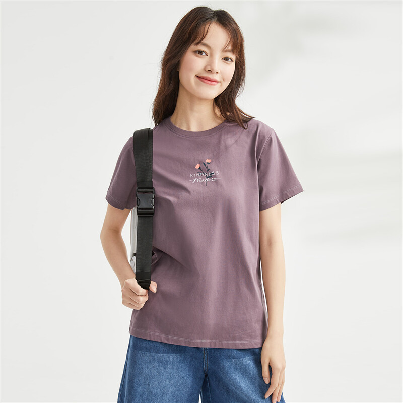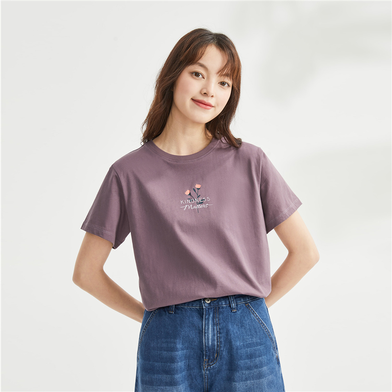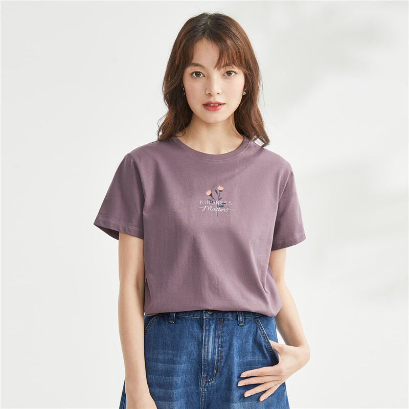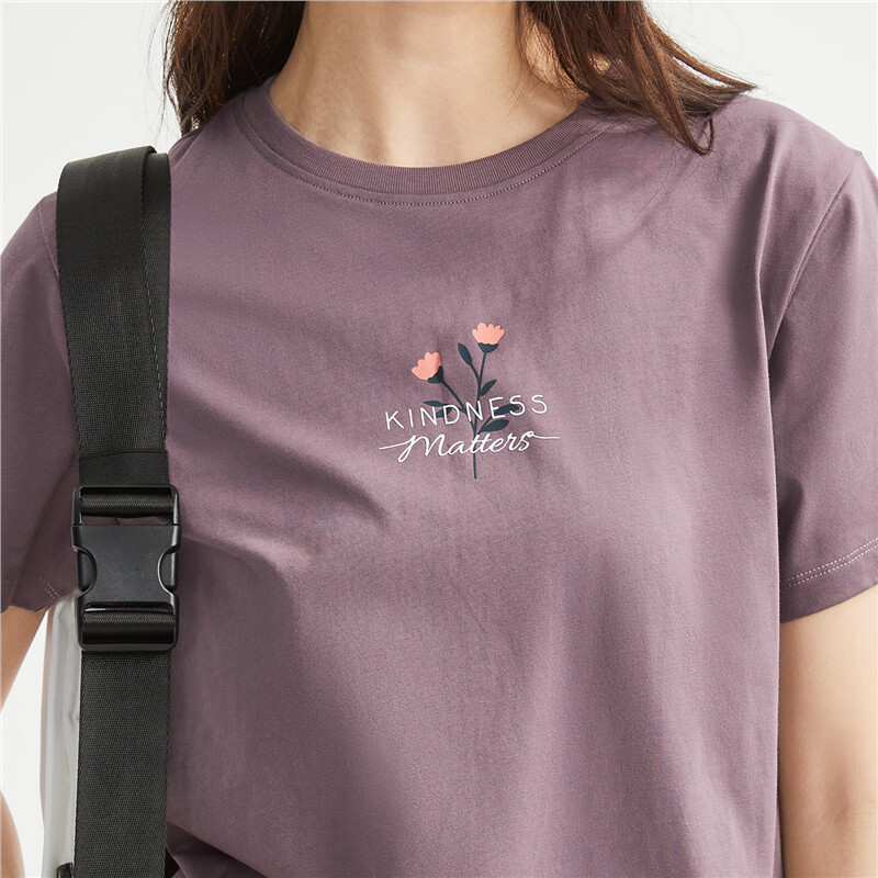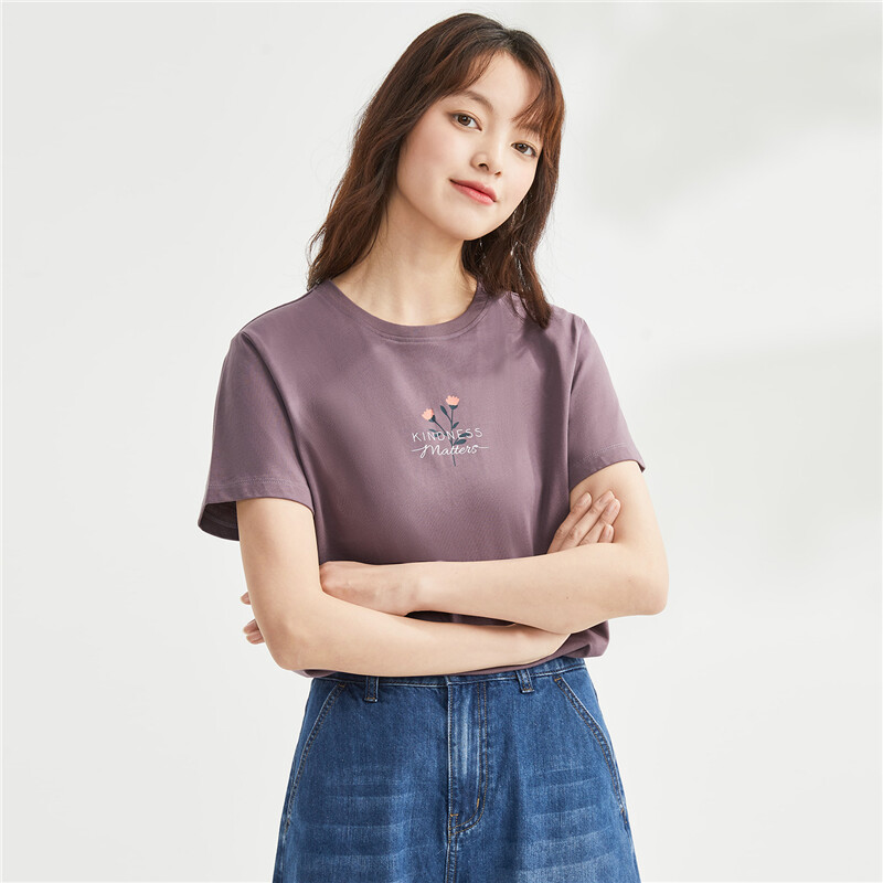 纯棉针织小花朵印花圆领短袖T恤