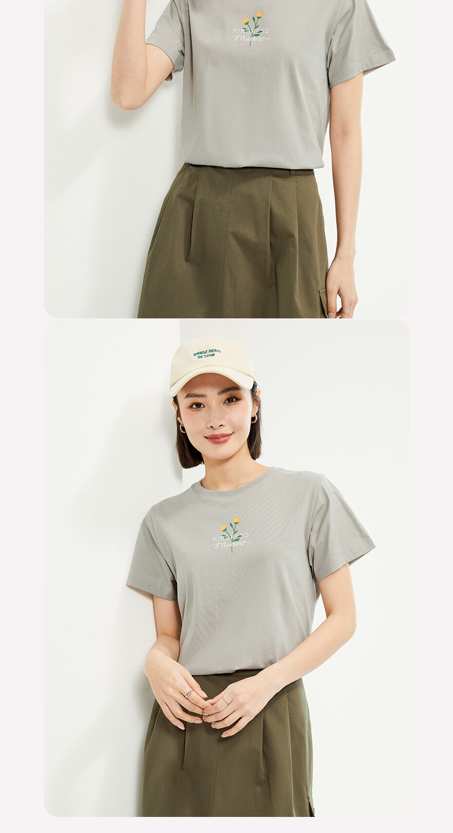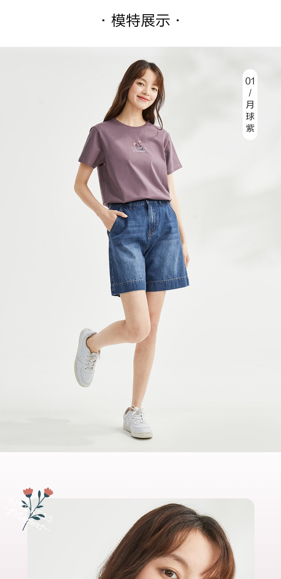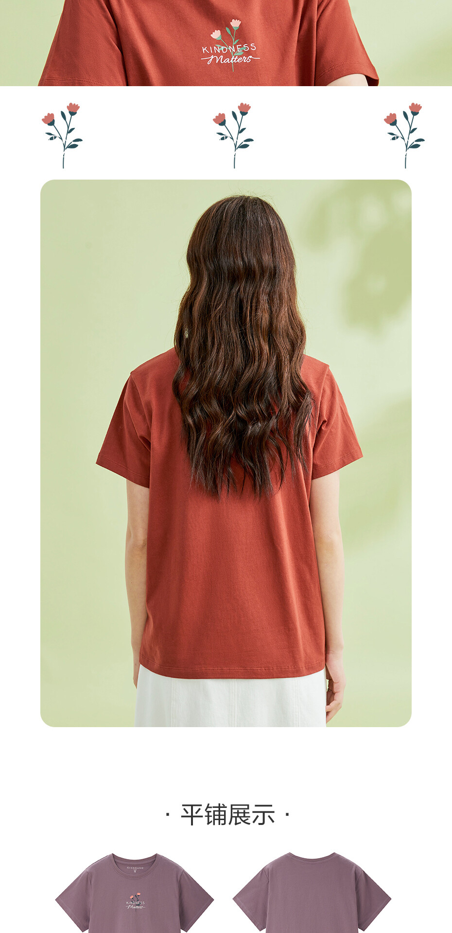 100%棉面料,质感细腻,舒适耐穿;罗纹圆领,不易变形,易穿易搭;小花朵印花,清新别致,休闲斯文。