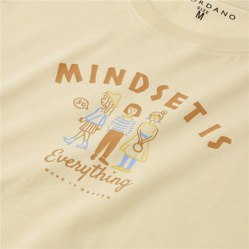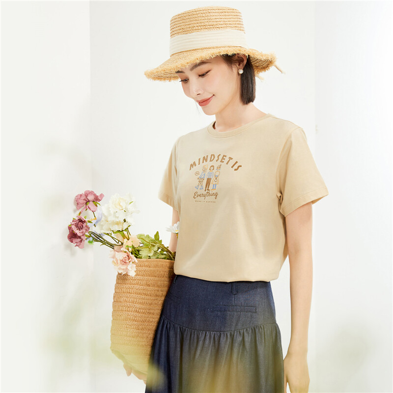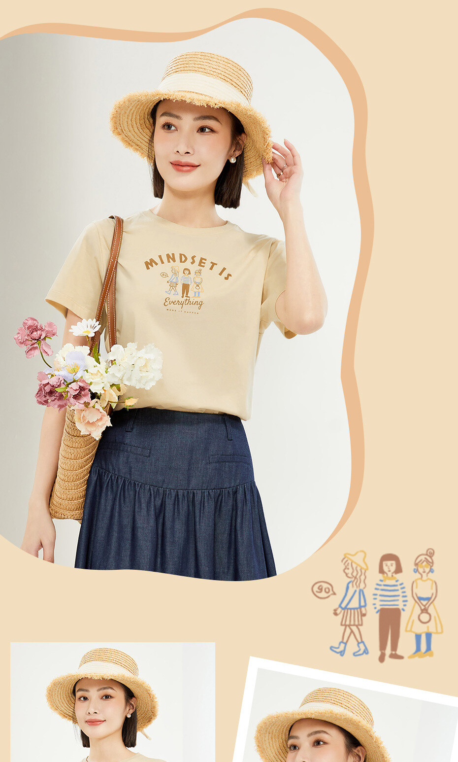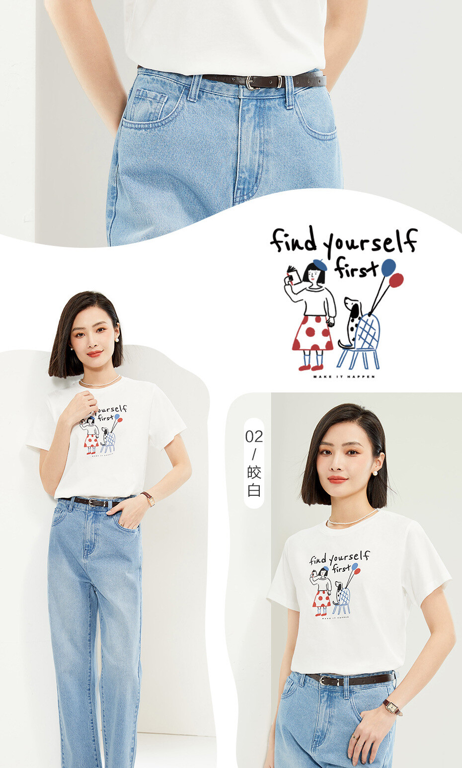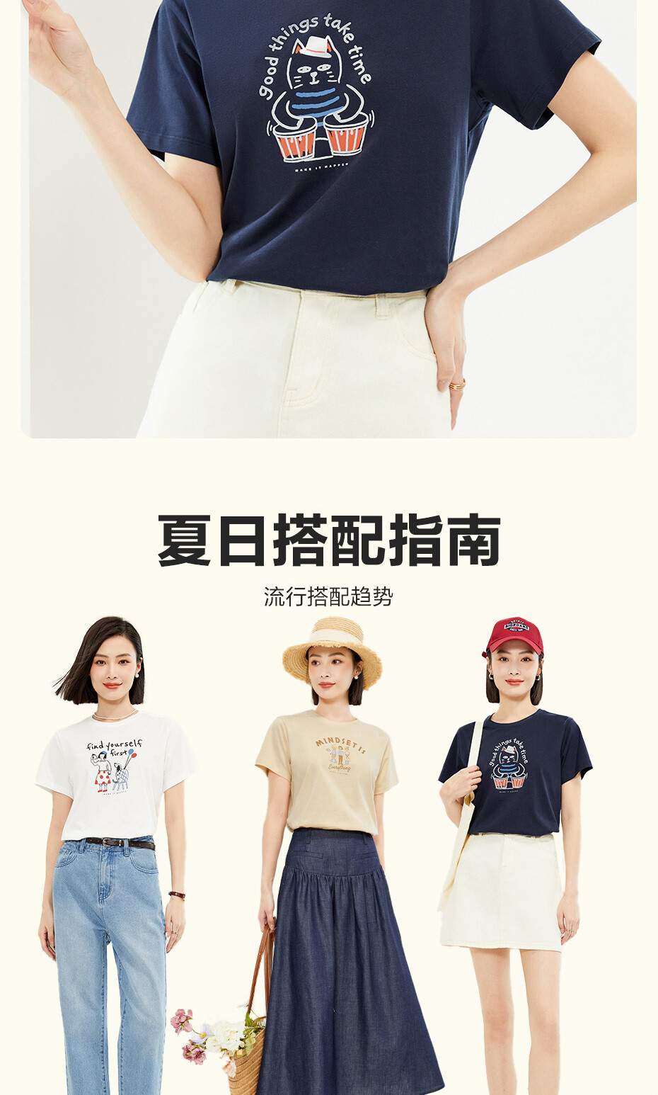 100%棉面料,质感细腻,舒适耐穿;罗纹圆领,不易变形,易穿易搭;法式漫画印花,风趣可爱,休闲风十足。