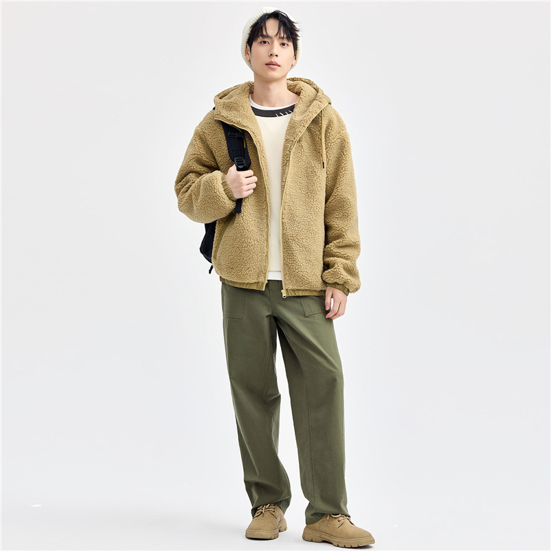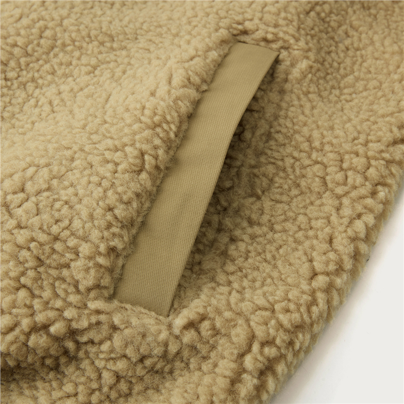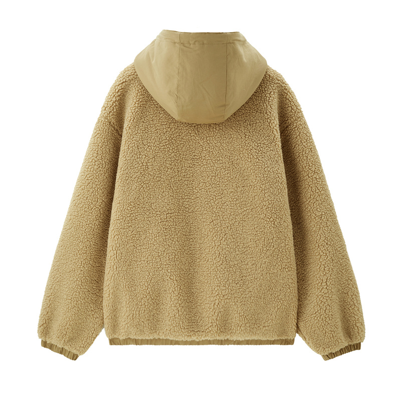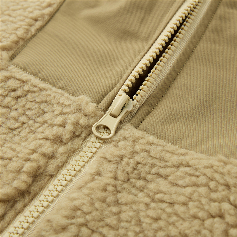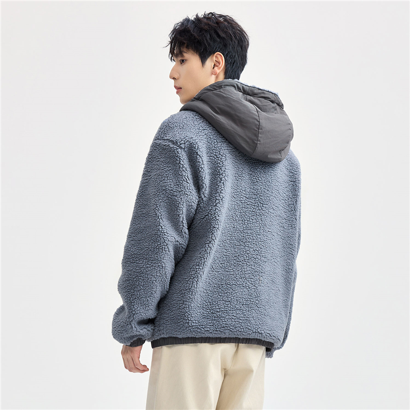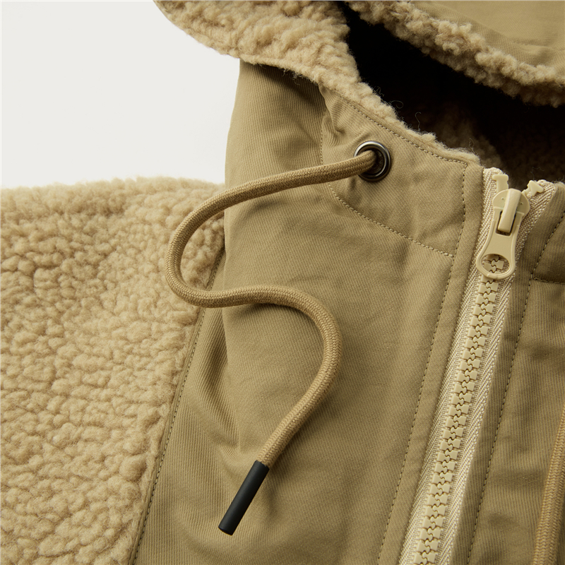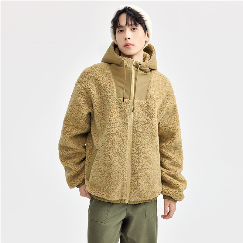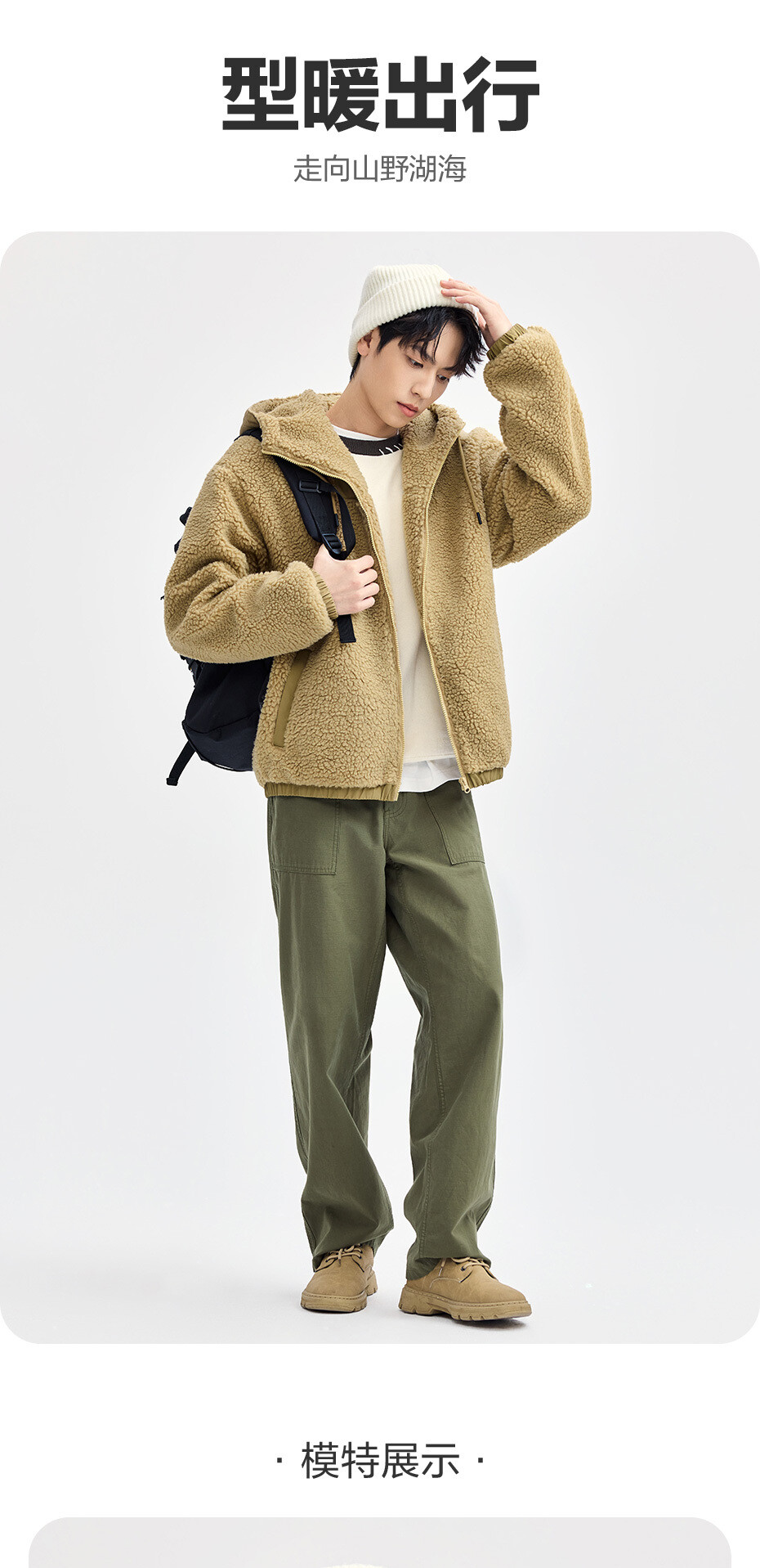 仿羊羔绒面料,厚实温暖;拼布连帽,加设抽绳,防风护项;拉链门襟,顺畅易拉,品质保证;拼布口袋,收纳方便,时尚有型。温馨提示:此款面料成分为针织(100%聚酯纤维)、梭织(64%棉 36%锦纶);里料成分为100%聚酯纤维。