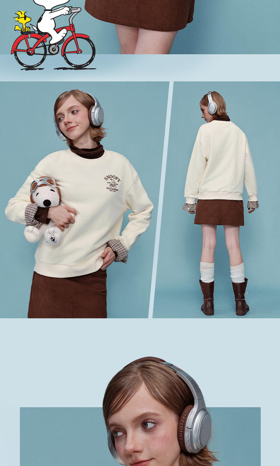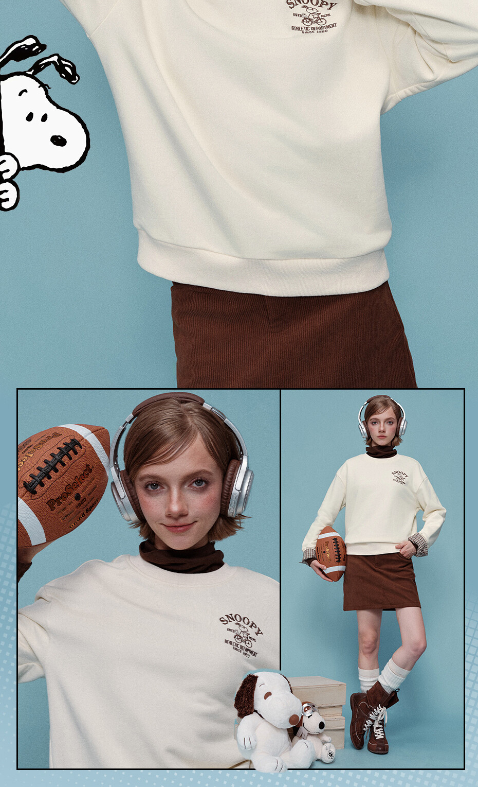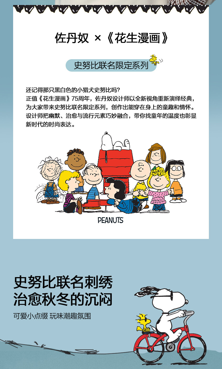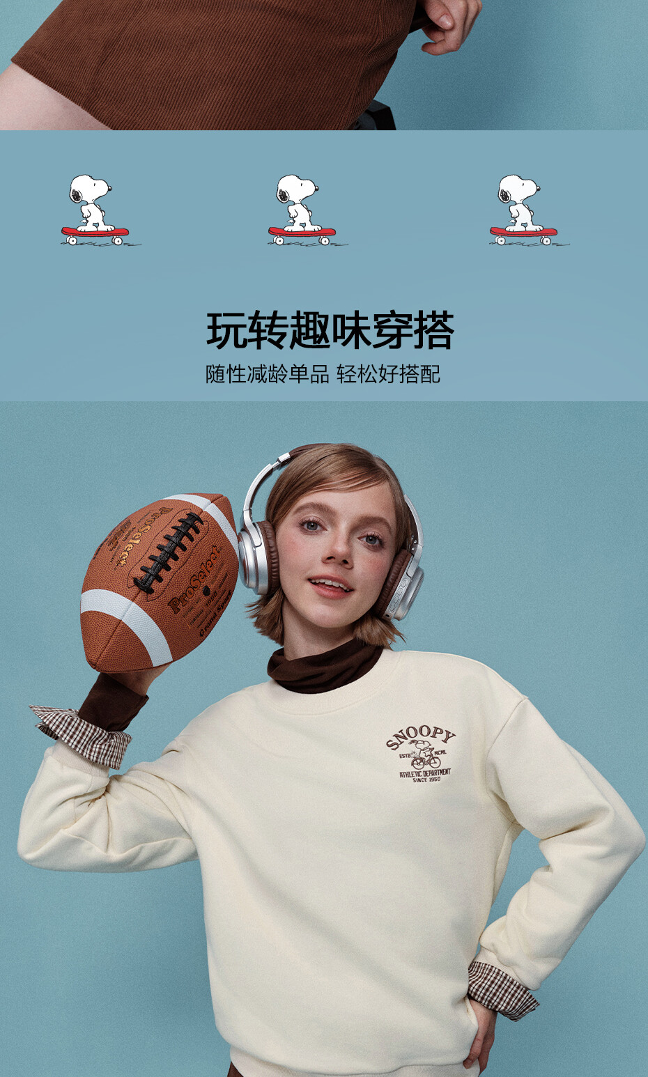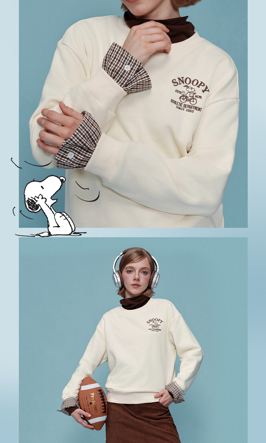 内抓绒卫衣布,温暖舒适;罗纹圆领,不易变形,易穿易搭;史努比联名刺绣,立体精致,童趣复古;假两件格纹袖口,丰富造型,时髦吸睛。温馨提示:此款面料成分为衫身(82%棉 18%聚酯纤维)、格纹(100%棉)