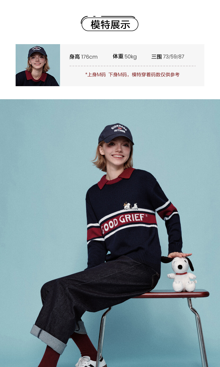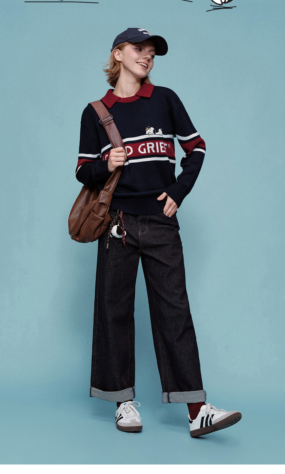 粗针羊毛混纺,舒适耐穿;翻领设计,工整美观,干净利落;史努比联名刺绣,小巧精致,可爱点睛。