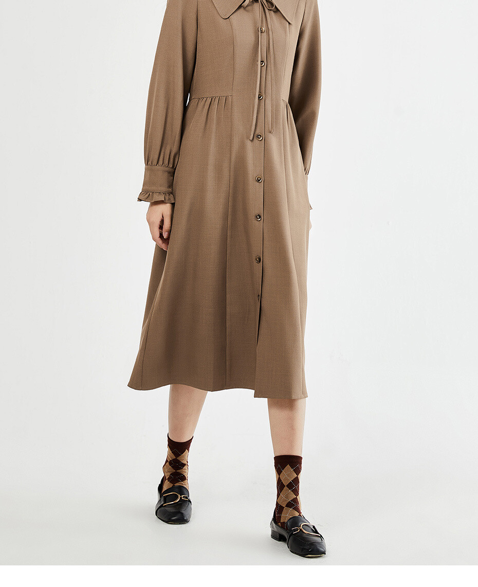 西装料梭织大翻领绑带荷叶边连衣裙