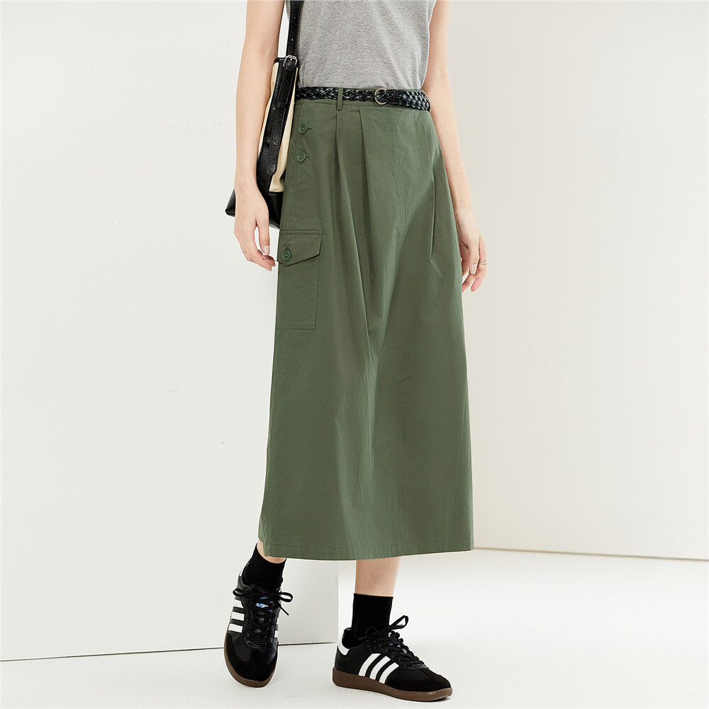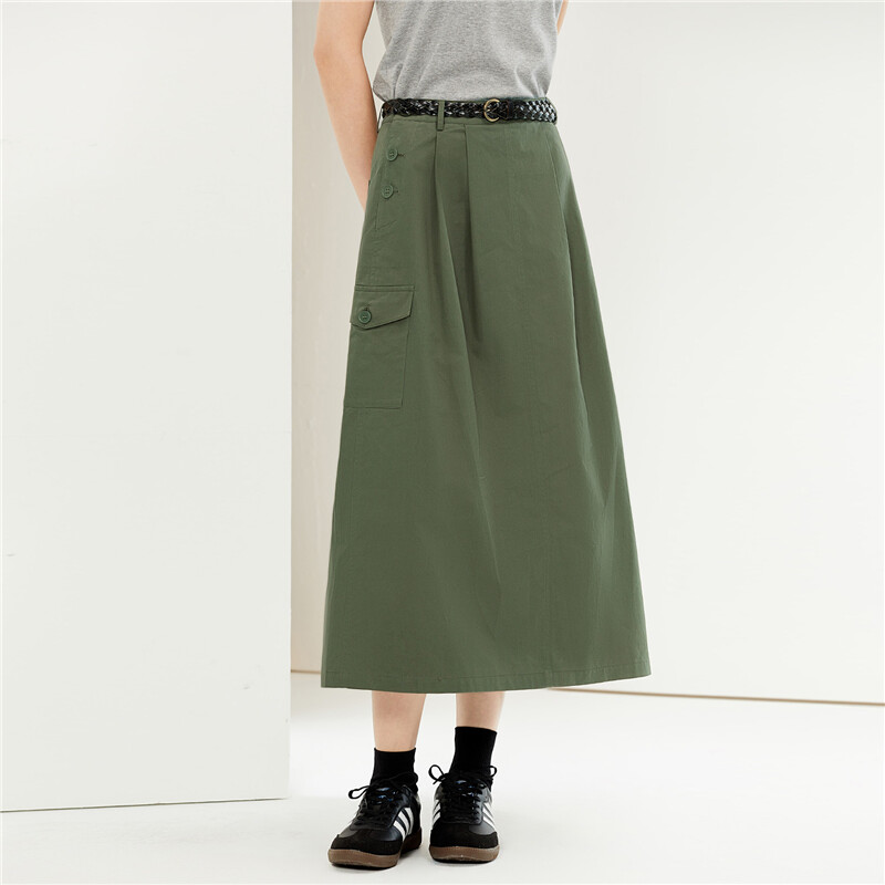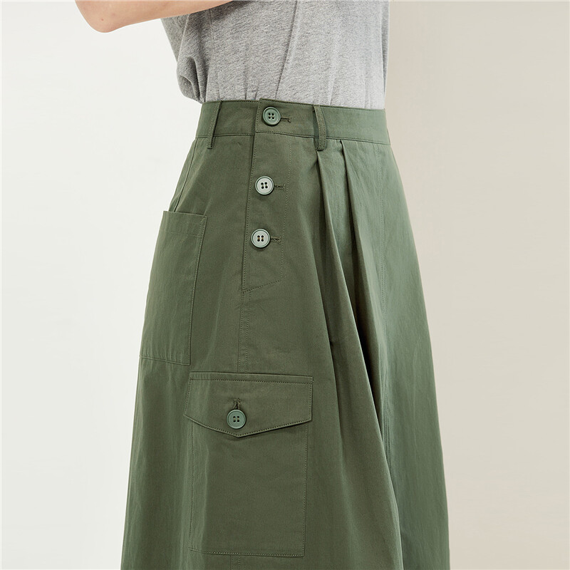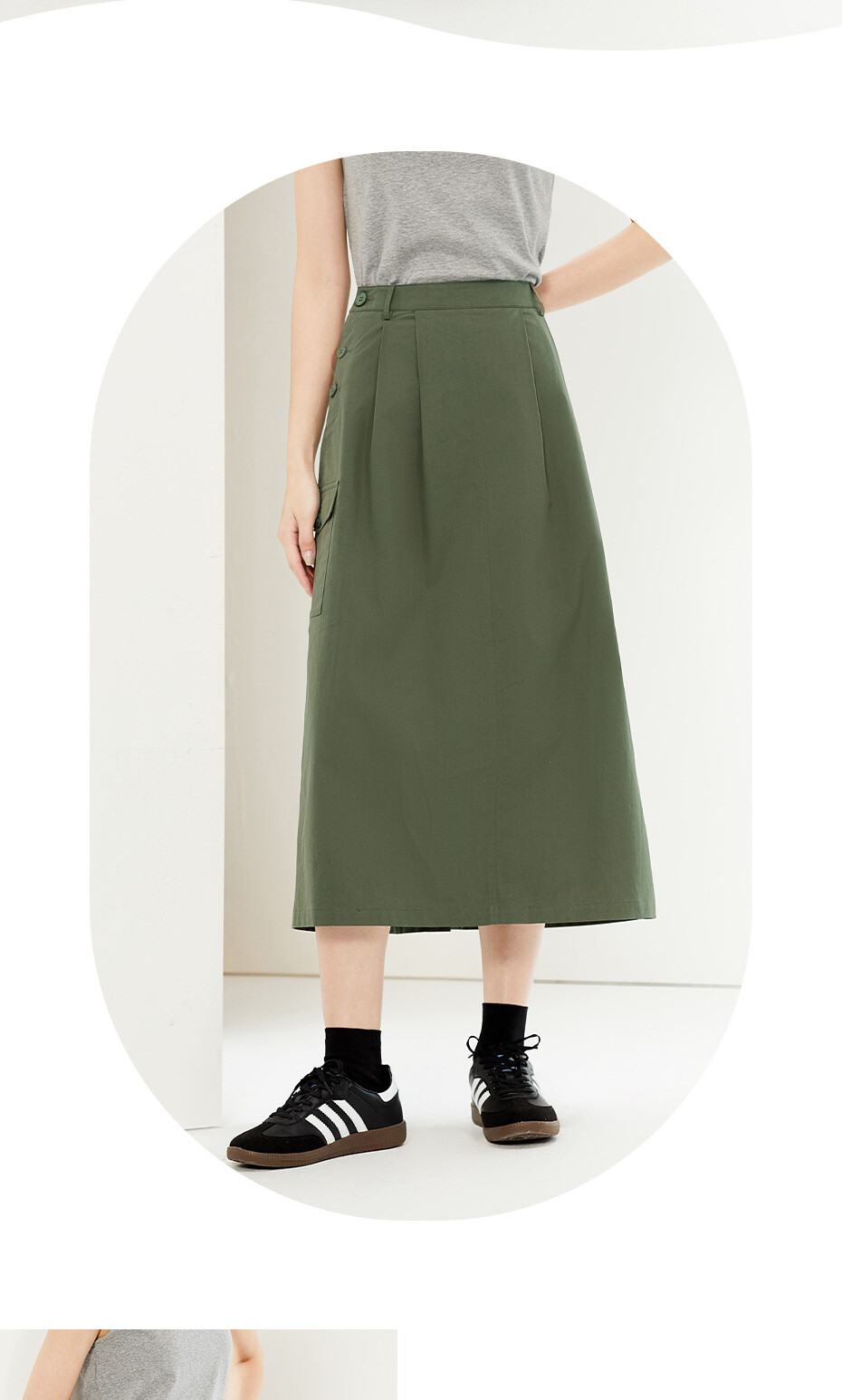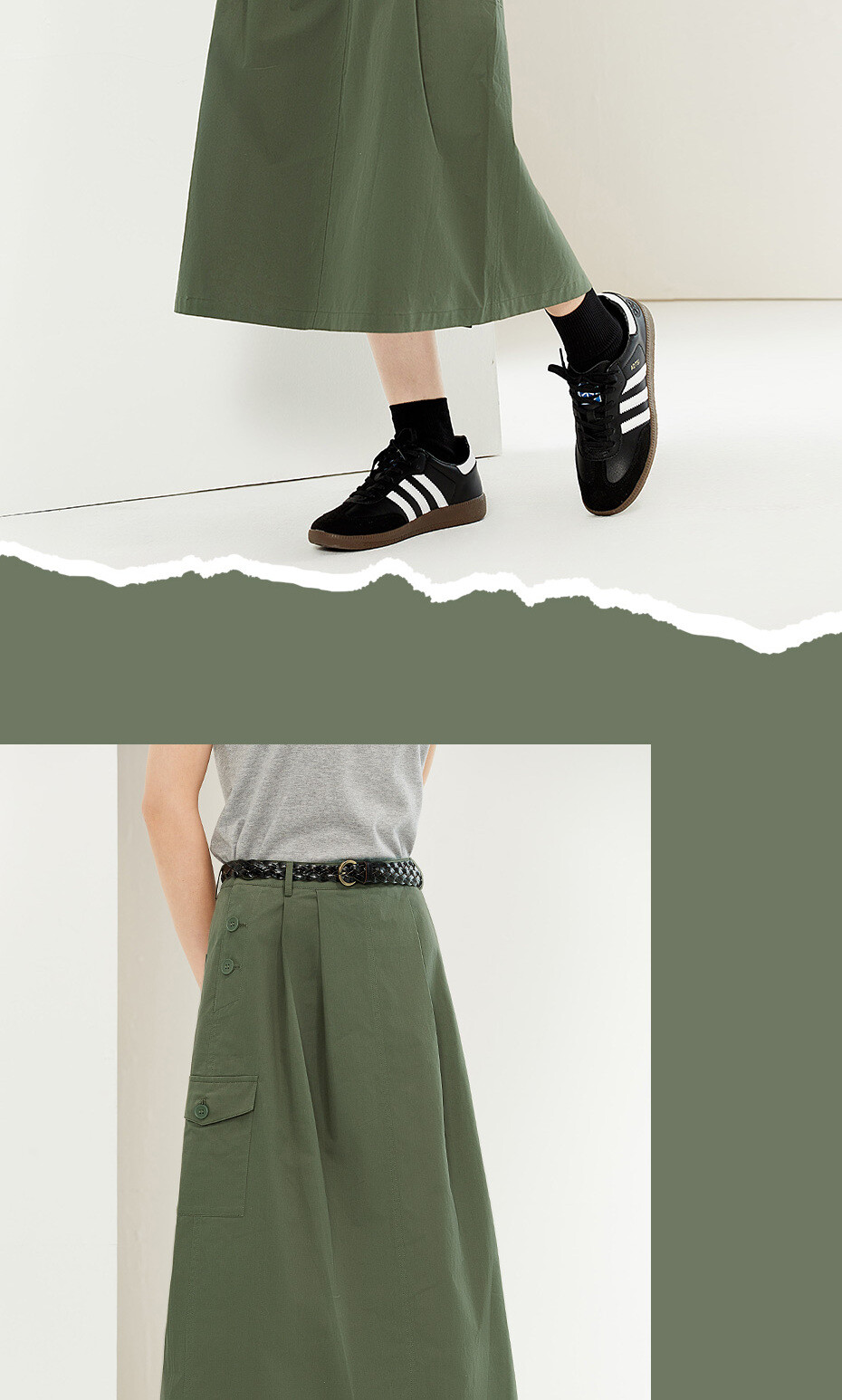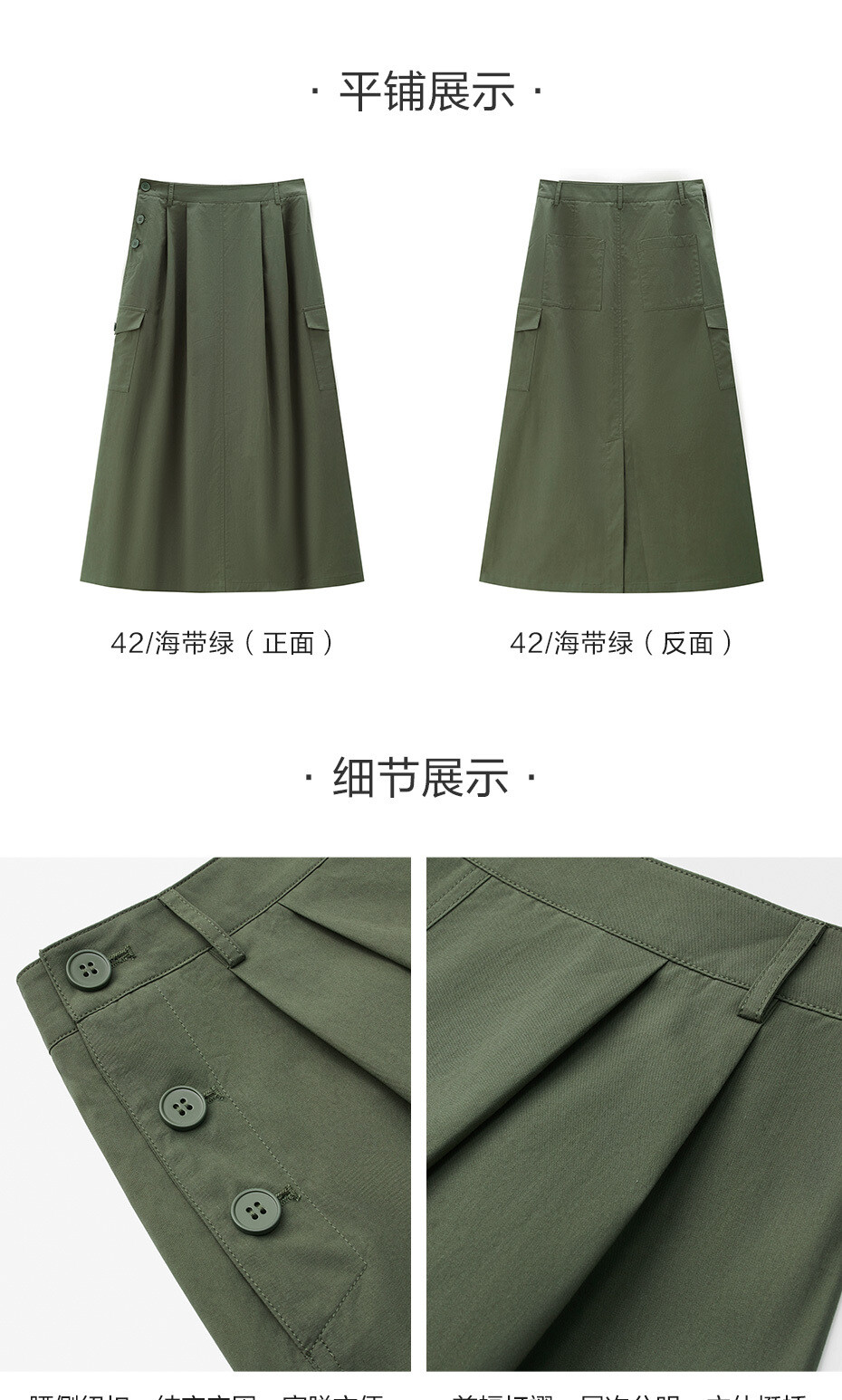 100%棉面料,质感细腻,舒适耐穿;腰侧纽扣,结实牢固,穿脱方便;前幅打褶,层次分明,立体挺括;戴盖口袋,收纳安全,工装风十足。温馨提示:页面腰带仅作搭配展示,所售商品不含腰带。
