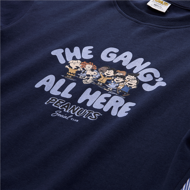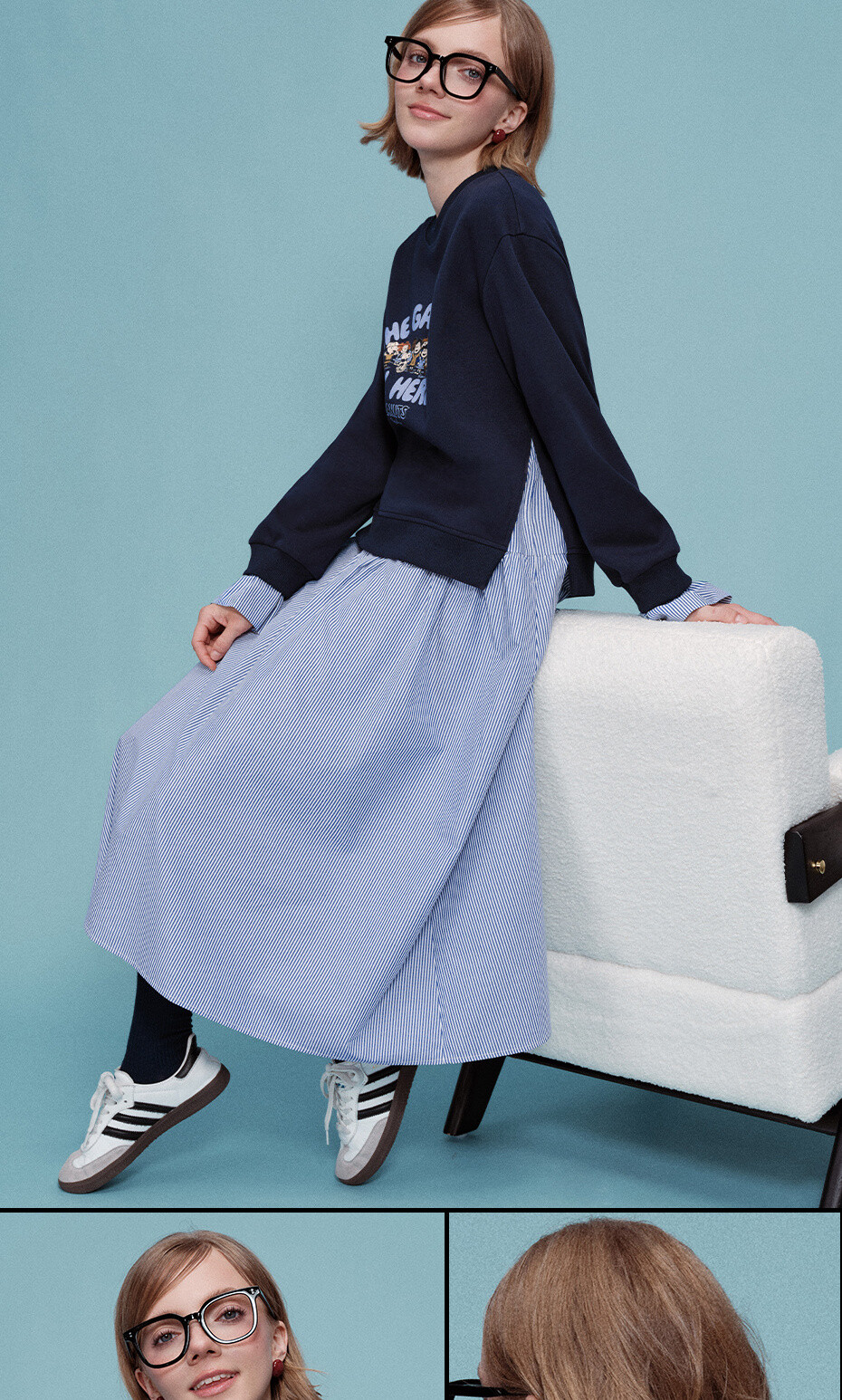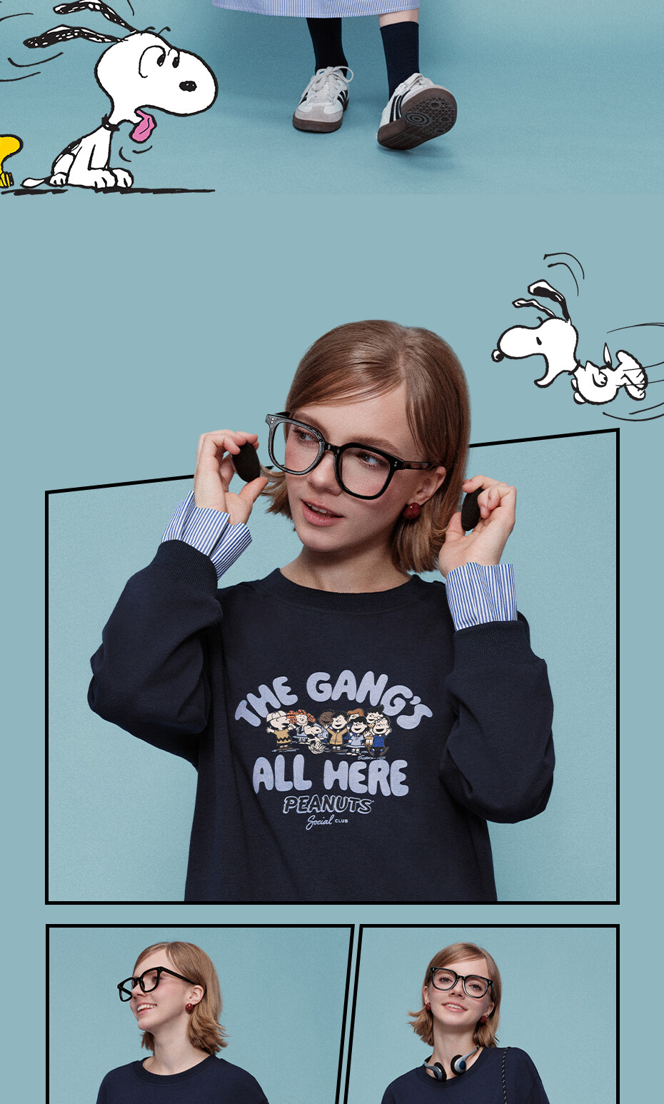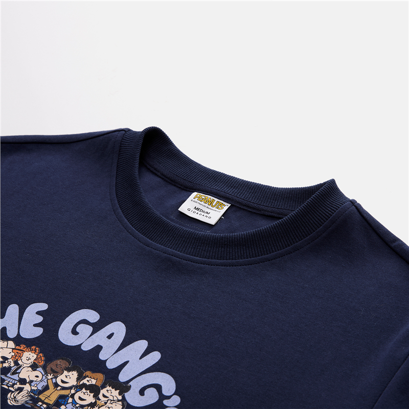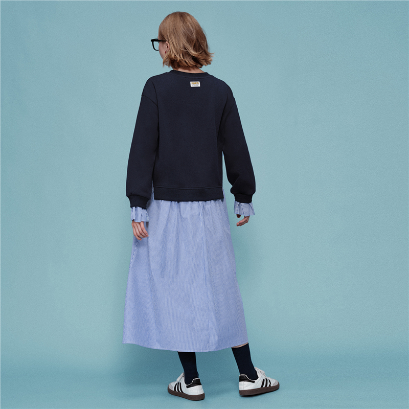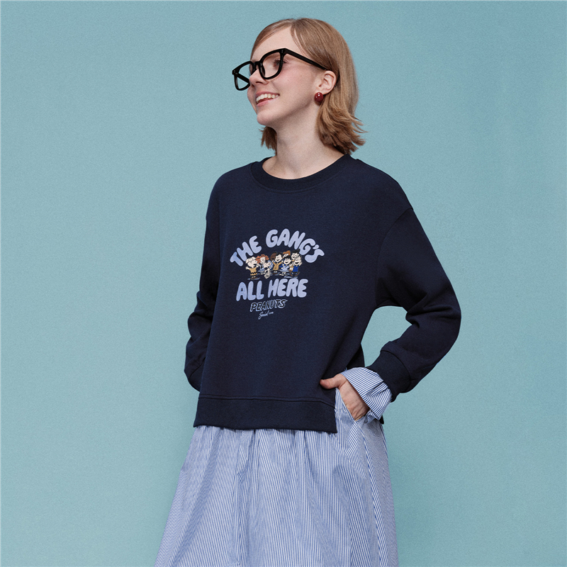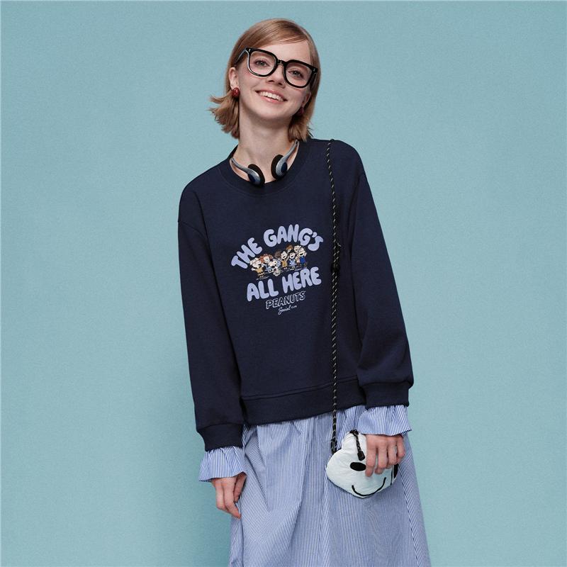 双面针织布,拼接细条纹梭织料,舒适耐穿;拼接假两件,层次十足,造型吸睛;史努比联名印花,后幅织标,复古童趣。温馨提示:此款面料成分为针织(82%棉 18%聚酯纤维)、梭织(70%棉 30%莱赛尔纤维)