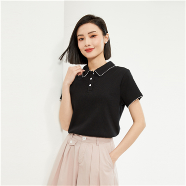 拼接蕾丝娃娃领针织短袖POLO