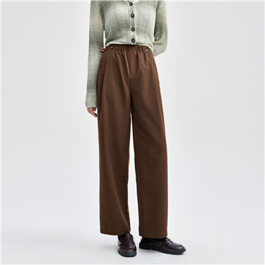 磨毛收褶松紧腰阔腿梭织休闲长裤