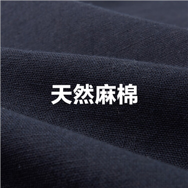 天然麻棉褶皱半松紧腰阔腿薄七分裤