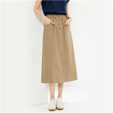 纯棉梭织大口袋纽扣松紧腰薄半身裙
