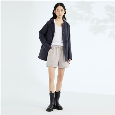 梭织宽松抽绳束腰大口袋连帽风衣外套