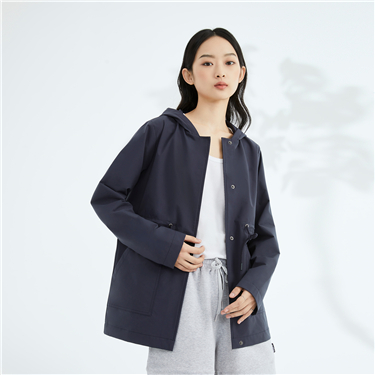 纯色梭织多口袋网里连帽风衣外套