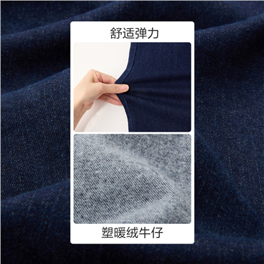塑暖绒开叉裤脚五袋款紧身牛仔长裤