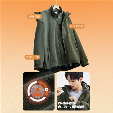 复合摇粒绒梭织可卸帽夹克外套