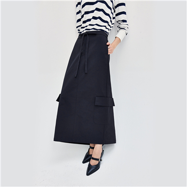工装口袋抽绳半松紧腰梭织半身裙