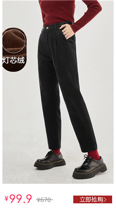 抓毛打褶半松紧腰梭织休闲长裤
