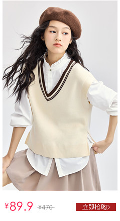 撞色V领毛织针织衫背心