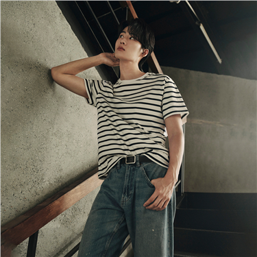 【韩国同款】佐丹奴海魂衫男纯棉条纹上衣圆领短袖T恤