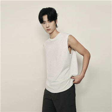 【韩国同款】佐丹奴无袖T恤男纯色圆领修身弹力针织背心