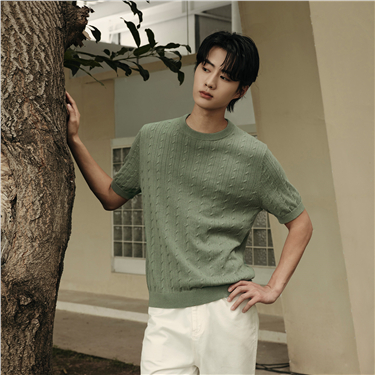 【韩国明星同款】佐丹奴夏季复古风扭花圆领短袖针织衫