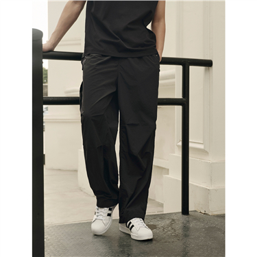 【韩国同款】佐丹奴休闲裤男黑色裤子抽绳松紧腰直筒长裤