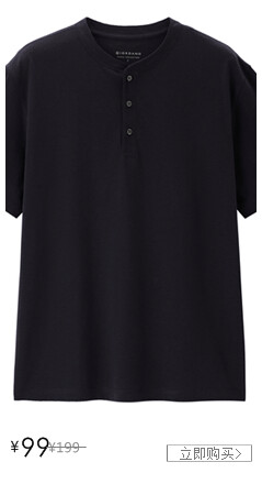 【韩国同款】佐丹奴亨利衫男夏纯棉纯色亨利领短袖T恤