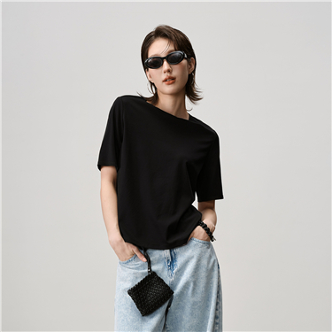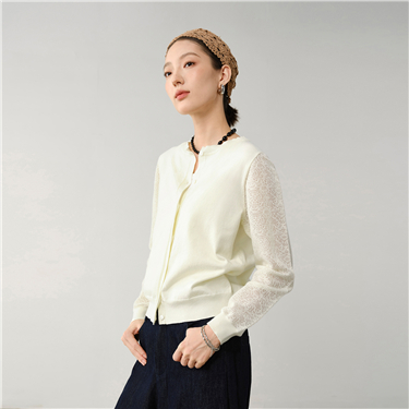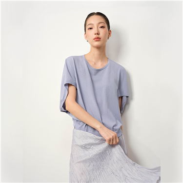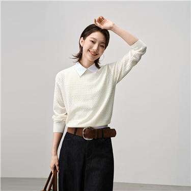 篮纹图案透视感圆领短袖针织上衣(含背心)