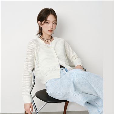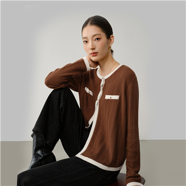 双面穿V领后幅纽扣蝙蝠袖毛织针织衫