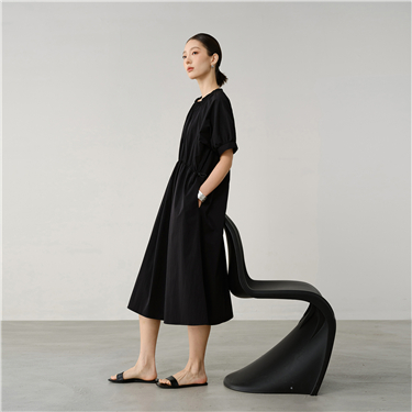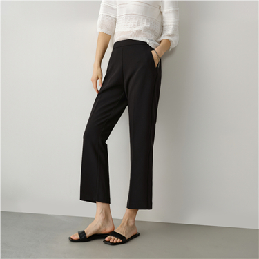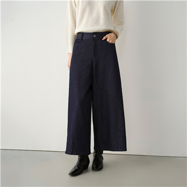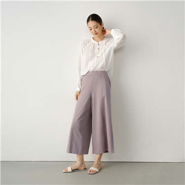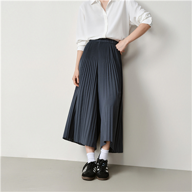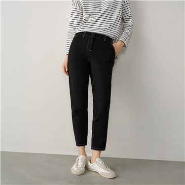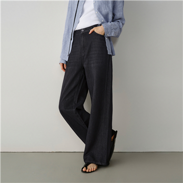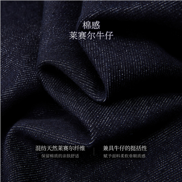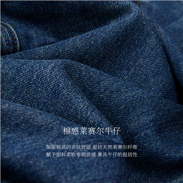 前幅压褶设计棉与莱赛尔纤维布桶形休闲裤