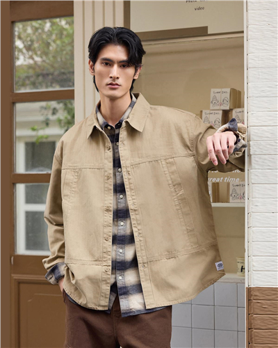 纯棉品牌织标宽松梭织长袖衬衫