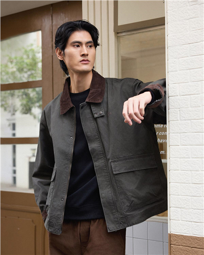 男女同款纯棉灯芯绒翻领工装夹克外套